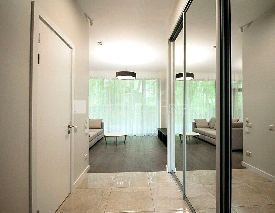Новостройка, благоустроенная озеленённая территория, подъездная дорога покрыта брущаткoй, въездные ворота оснащены автоматической подъёмной системой, подземная стоянка, во дворе детская игровая площадка, озеленённая территория со свежепосаженными расстениями, апартаменты люкс, лифт, две терассы 77 м2, система вентиляции воздуха, система кондиционирования воздуха, количество спален 2 шт., студио, кухня объединена с гостинной, гардеробная, высокие потолки, автоматическая система отопления, счетчики отопления, индивидуальная система учета отопления, полная отделка , большие витрины, алюминевые стекло-пакетные окна, новая сантехника, паркетный пол, кафельный пол, два санузла, ванна, душевая кабина, встроенная кухня, встроенные стенные шкафы, двуспальная кровать, стол, стулья, трёхместное кресло для отдыха, кондиционер, холодильник, посудомоечная машина, электрическая плита, духовка, стиральная машина, интернет, сигнализация, круглосуточное видеонаблюдение, сдана в эксплуатацию, до Риги, до аэропорта, до моря, цена в летний сезон - 3500.00 EUR, CITY REAL ESTATE ID - 516486
