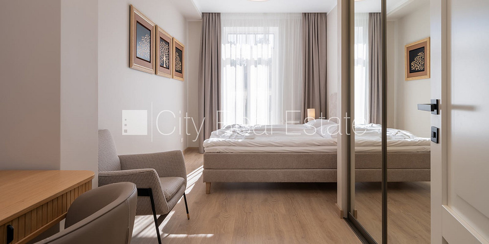 Новостройка, фасадный дом, благоустроенный озеленённый двор, подземная стоянка, во дворе детская игровая площадка, лифт, терасса 34 м2, окна выходят во двор, система вентиляции воздуха, изолированные комнаты 2 шт., студио, кухня объединена с гостинной, автоматическая система отопления, счетчики отопления, индивидуальная система учета отопления, полы с подогревом, большие витрины, паркетный пол, два санузла, ванна, душевая кабина, встроенная кухня, встроенные стенные шкафы, кондиционер, телевизор, холодильник, посудомоечная машина, электрическая плита, духовка, вытяжка, микроволновая печь, стиральная машина, интернет, сигнализация, круглосуточное видеонаблюдение, лестничная клетка на кодовом замке, сдаётся со всем видимым на фотографии оборудованием, освободится в сентябре, в проекте ещё доступны квартиры, стратегически выгодное место, до моря 350 м, цена в летний сезон - 6000.00 EUR, CITY REAL ESTATE ID - 517001
