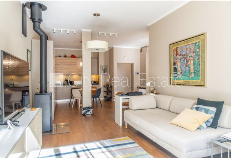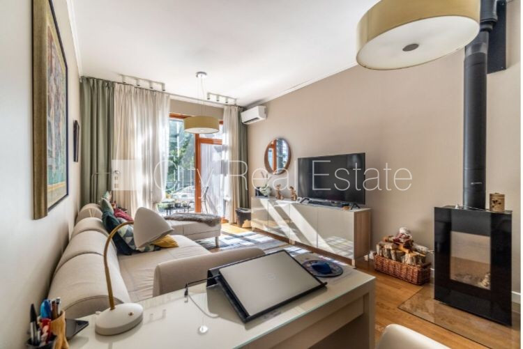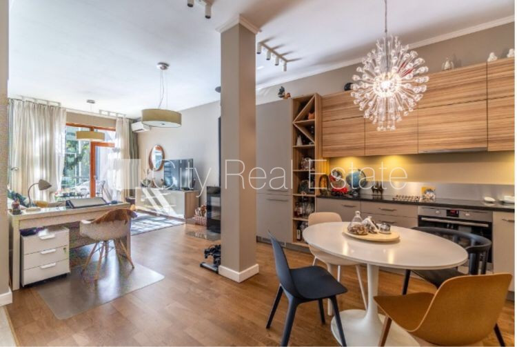 Проект - Sky Garden, новостройка, благоустроенная озеленённая территория, подземная стоянка, во дворе детская игровая площадка, апартаменты люкс, лифт, балкон, застеклённая лоджия, терасса на крыше 64.75 м2, двухэтажный, студио, кухня объединена с гостинной, мангал, камин, центральное отопление, полы с подогревом в ванной, покрашенные стены, новая сантехника, покрытие пола из дуба, два санузла, ванна, душевая кабина, встроенная кухня, встроенные стенные шкафы, кондиционер, холодильник, посудомоечная машина, электрическая плита, духовка, интернет, круглосуточное видеонаблюдение, видео домофон, круглосуточная охрана, до железнодорожной станции 300 м, до остановки автобуса 100 м, до моря 400 м, поможем оформить Вид на жительство в Латвии, CITY REAL ESTATE ID - 438850