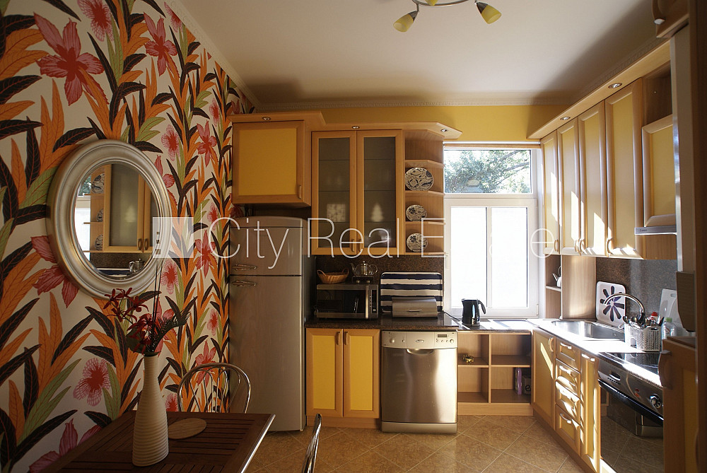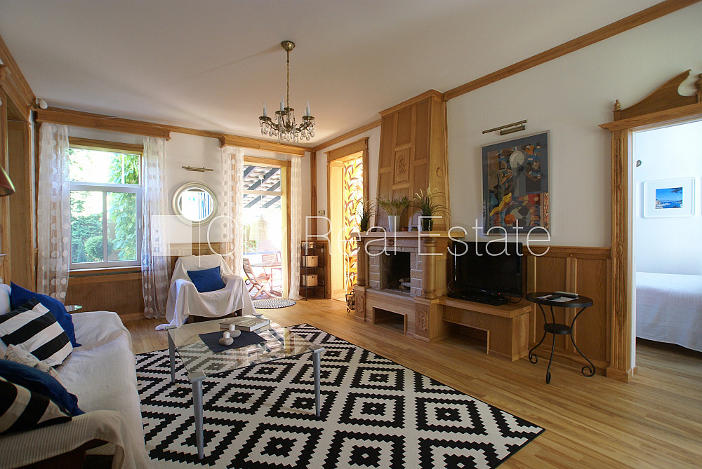Благоустроенный озеленённый двор, территория обнесена забором, терасса, количество спален 2 шт., изолированные комнаты 3 шт., одна проходная комната, кухня, камин, газовое отопление, kоличество ванных комнат 1 шт., ванна, встроенная кухня, кровать, двуспальная кровать, кухонный стол, кресла для отдыха, кухонные стулья, садовая мебель, холодильник, посудомоечная машина, электрическая плита, духовка, вытяжка, микроволновая печь, стиральная машина, интернет, до моря 400 м, CITY REAL ESTATE ID - 427603