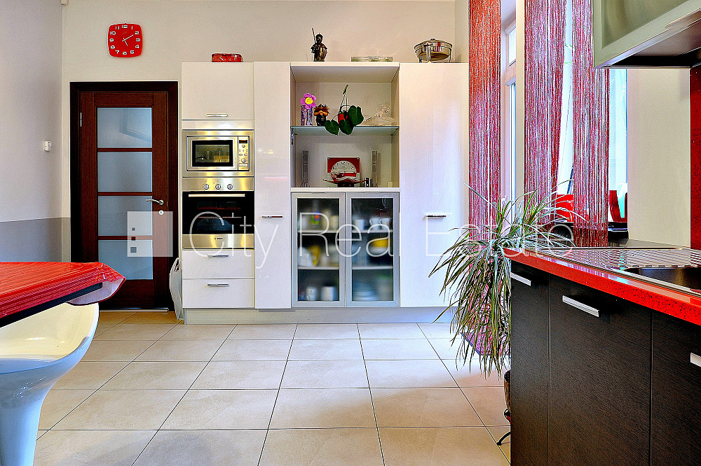 Частный дом, новостройка, благоустроенный озеленённый двор, территория обнесена забором, гараж на одну машину, первый этаж с садом, два балкона, терасса, количество спален 5 шт., гостиная, кухня, гардеробная, kабинет, газовое отопление, автоматическая система отопления, полная отделка , деревянные стекло-пакетные окна, паркетный пол, три санузла, ванна, душевая кабина, встроенная кухня, встроенные стенные шкафы, телевизор, холодильник, посудомоечная машина, электрическая плита, духовка, стиральная машина, сателит, интернет, сдаётся со всем видимым на фотографии оборудованием, cадовая беседка, стратегически выгодное место, цена в летний сезон - 5000.00 EUR, CITY REAL ESTATE ID - 424508