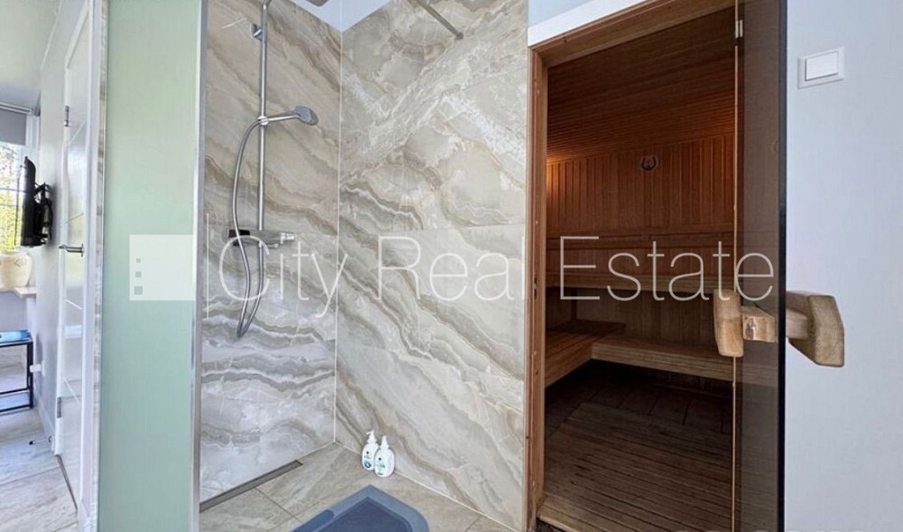 Частный дом, реновированный дом, благоустроенная озеленённая территория, автоматическая система полива газона, территория обнесена забором, въездные ворота оснащены автоматической подъёмной системой, гараж на две машины, во дворе детская игровая площадка, первый этаж с садом, терасса, бассеин, финская баня, окна выходят в обе стороны дома, система кондиционирования воздуха, количество спален 3 шт., двухэтажный, гостиная, кухня, помещение для отдыха, гардеробная, высокие потолки, газовое отопление, паркетный пол, два санузла, душевая кабина, душ джакузи, встроенная кухня, встроенные стенные шкафы, диван, раздвижной угловой диван, двуспальная кровать, холодильник, посудомоечная машина, электрическая плита, духовка, стиральная машина, oптический интернет, сигнализация, домофон, находится рядом с лесом, cадовая беседка, теннисные корты, ухоженный лесной парк с пешеходными дорожками, стратегически выгодное место, до моря 400 м, CITY REAL ESTATE ID - 426024