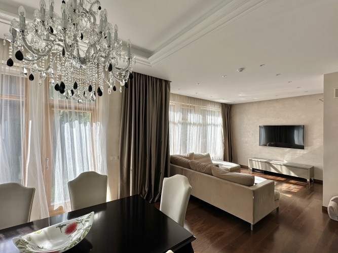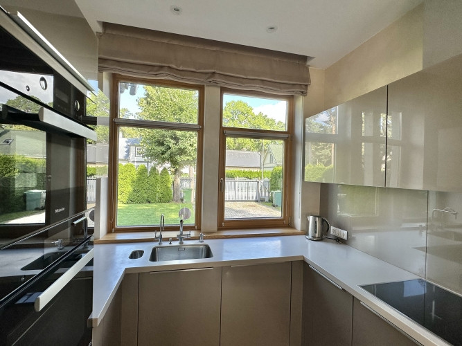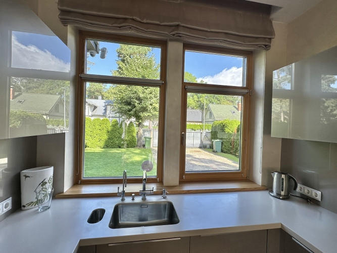Сдается в аренду элегантный дом в Булдуры, всего в нескольких шагах от отеля Лиелупе и пляжа в 300 метрах. Дом полностью меблирован и оборудован всей необходимой бытовой техникой. Используются материалы высшего класса, дизайнерские светильники и мебель. Дом состоит из кухни с выходом на террасу, гостиной, четырех спален, спальни для хозяев с гардеробом и ванной комнатой, сауны, а также дополнительной ванной комнаты и хозяйственной комнаты. Большие окна на юге наполняют дом солнечным светом. Ухоженная территория и сад. Стоимость аренды в летние месяцы составляет 8000 евро/мес.