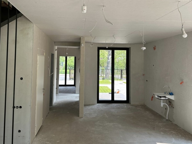 Продаётся стильный и энергоэффективный дом дуплекс премиум-класса в Меллужи одном из самых тихих и зелёных районов Юрмалы, в окружении живописного соснового леса, на равном расстоянии от моря и реки Лиелупе. Дом построен и сдан в эксплуатацию в 2025 году, расположен на земельном участке площадью 600 м. Кирпичное здание с железобетонными межэтажными перекрытиями прочное, пожаробезопасное и долговечное. Общая площадь 180 м, включая жилую площадь 155,8 м, балкон и террасу 24,2 м. Планировка: светлая гостиная с потолками высотой 4,5 м, панорамными окнами и выходом на просторную террасу; главная спальня с гардеробной, ванной комнатой и балконом; две детские спальни и кабинет/гостевая; три ванные комнаты; хозяйственное помещение. Комфорт и технологии: тепловой насос воздухвода VIESSMANN, тёплые полы на обоих этажах, электричество 25A и место для зарядки электромобиля, видеонаблюдение, индивидуально регулируемое отопление, городские коммуникации. Дом продаётся с белой отделкой необходимо уложить напольные покрытия, оборудовать санузлы и приобрести мебель. Придомовая территория и окружение: мощёная парковка на 2 автомобиля, сосновый лес вокруг, всего 10 минут до пляжа, рядом общественный транспорт, школы, магазины и кафе, до центра Риги около 30 минут.