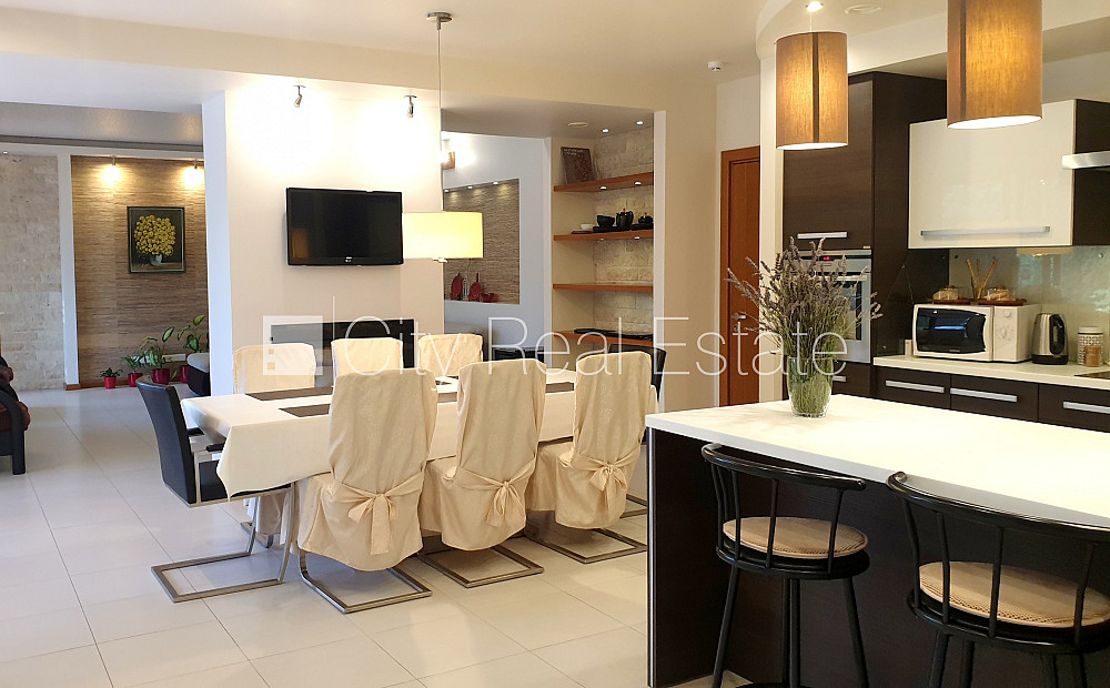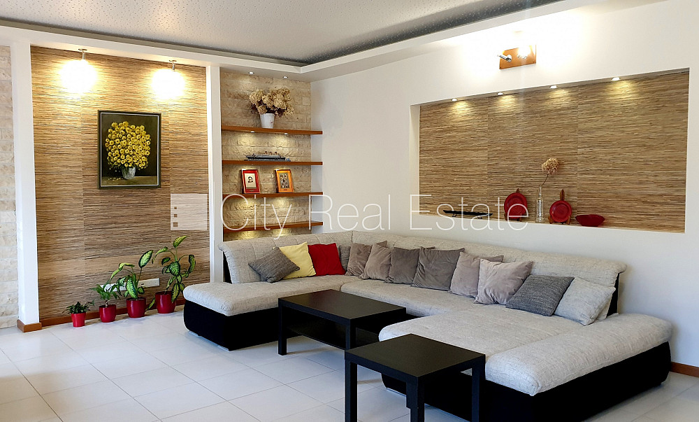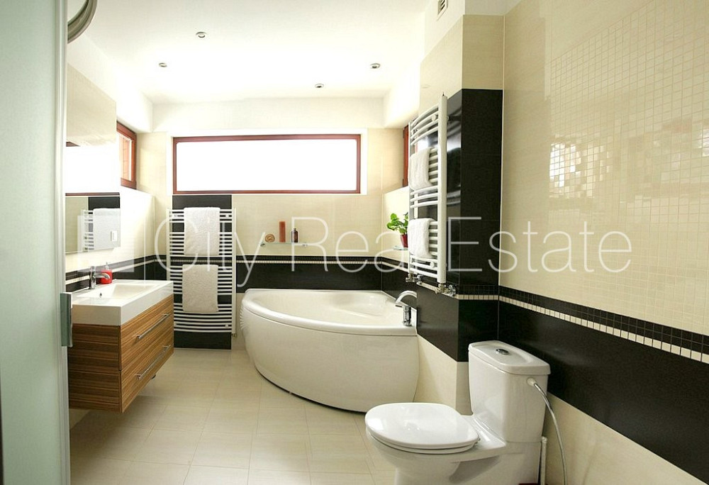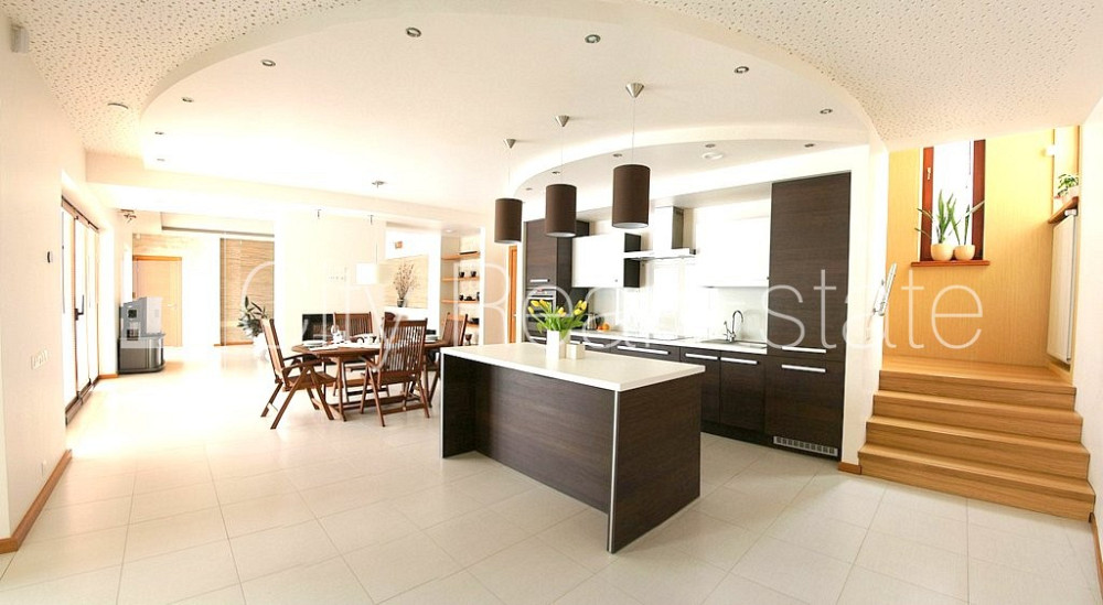Земля в собственности, новостройка, фасадный дом, кирпичные стены, благоустроенная озеленённая территория 1800 м2, въездные ворота оснащены автоматической подъёмной системой, гараж на две машины, озеленённая территория со свежепосаженными расстениями, апартаменты люкс, первый этаж с садом, балкон, две терассы, бассеин, финская баня, система вентиляции воздуха, количество спален 4 шт., двухэтажный, студио, кухня объединена с гостинной, два холла, холл, подсобка, высокие потолки, два входа, газовое отопление, автоматическая система отопления, полная отделка , полы с подогревом, большие витрины, деревянные стекло-пакетные окна, покрытие пола из дуба, паркетный пол, кафельный пол, три санузла, душевая кабина, ванна джакузи, биде, встроенная кухня, встроенные стенные шкафы, телевизор, холодильник, посудомоечная машина, электрическая плита, духовка, микроволновая печь, стиральная машина, домашний кинозал, интернет, сигнализация, дымовой детектор , рядом с морем, стратегически выгодное место, до моря 180 м, поможем оформить Вид на жительство в Латвии, CITY REAL ESTATE ID - 424024