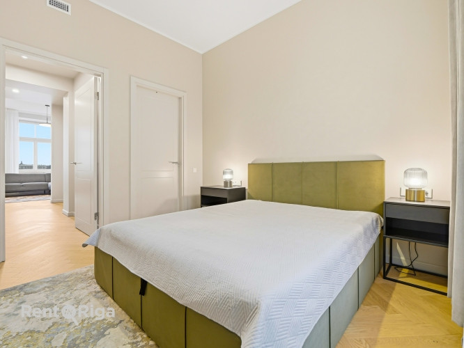 Apartment with a Wonderful View of Old Riga and the Daugava Bridges, Available for Long-Term Rent LAYOUT: The living room is connected to a fully equipped kitchen, bedrooms have windows facing a quiet, green courtyard. Bathroom with shower. Spacious entrance hall with a built-in wardrobe. This outstanding location offers an unparalleled view of the citys iconic skyline and the Daugava waterfront promenade, which is currently undergoing a complete renovation. LOCATION ADVANTAGES: A developed and dynamic environment between Rigas city center and the direction of Riga Airport. The area provides high-comfort living right in the heart of Riga, harmoniously combining urban convenience with closeness to nature. Several parks nearby offer opportunities for both peaceful relaxation and active recreation. In the immediate vicinity, there are two fitness clubs and a spa with a swimming pool. Old Riga is within walking distance, and nearby tram, trolleybus, and bus stops provide direct and convenient access to many districts of the city, as well as direct connections to Riga Airport.