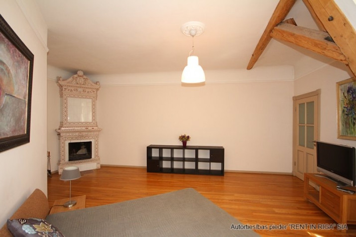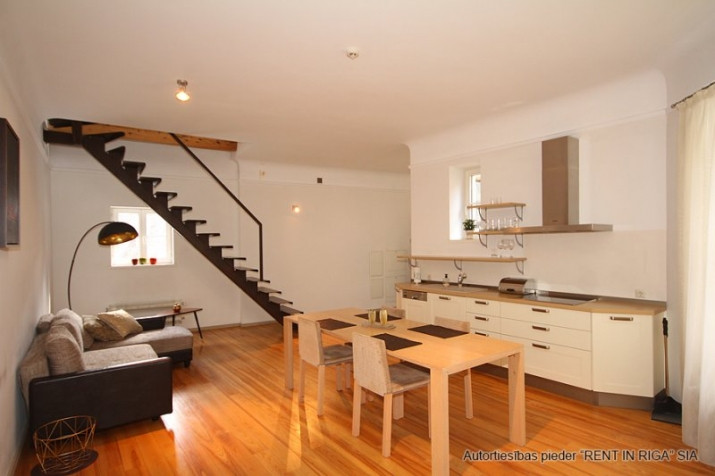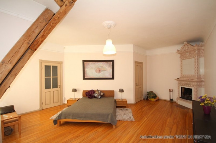 Beautiful one bedroom loft with terrace and winter garden, nice panorama view to Konventa Seta. Parquet floors, 'Miele' kitchen unit with all necessary equipment. In bedroom renovated fireplace, high quality modern oak furniture. The apartment has just performed the repair, ready for living.