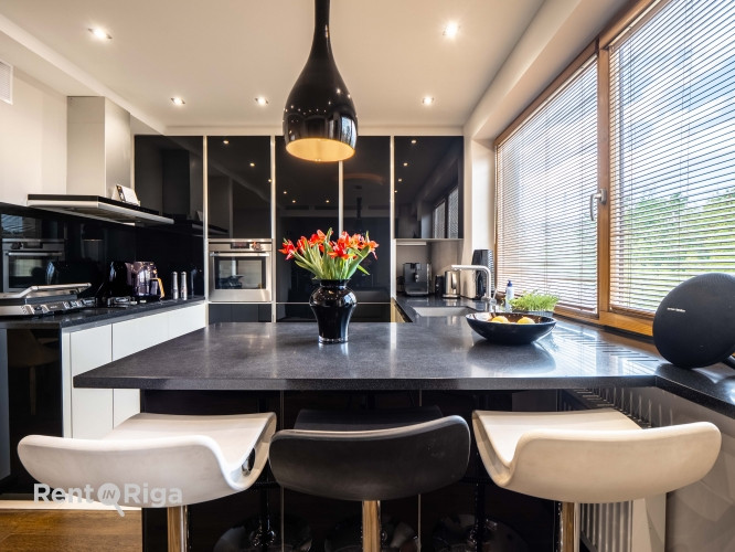 Bright and cozy 4-room apartment in residential project in the city center. Great and quiet location within walking distance of Viesturdārzs Park, Andrejsala, a sports and leisure complex, and Rimi supermarket. Convenient and quick access to the Quiet Center, Old Town, as well as nearby schools and kindergartens. Underground parking space included. The apartment features good-quality, modern finishes natural granite windowsills, LED lighting fixtures, parquet flooring with solid wood skirting, and wooden interior doors. Premium sanitary ware and a built-in kitchen with a stone countertop. One of the bathrooms includes a jacuzzi bathtub. Well-thought-out layout: spacious hallway with a large built-in wardrobe; large living room, partially separated from the fully equipped kitchen area; 2 full bathrooms; 3 separate bedrooms (one with a walk-in wardrobe). The apartment has individual heat, water, and electricity meters. Please note that this apartment has a commission fee of EUR 300 (one-time payment).