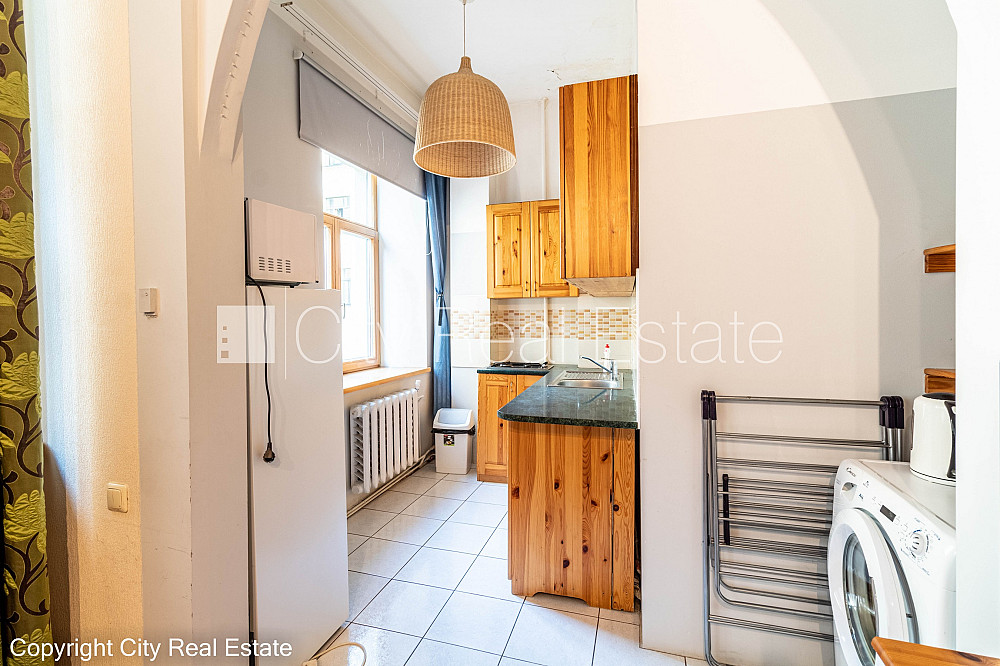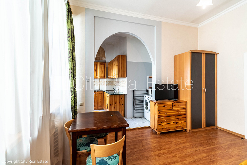 Дом во дворе, охраняемый двор, вход со двора, лифт, одна изолированная комната, кухня, высокие потолки, центральное отопление, пластиковые стекло-пакетные окна, ламинатный пол, совмещённый санузел, ванна, встроенная кухня, диван, двуспальная кровать, стол, стулья, шкаф, телевизор, холодильник, газовая плита, микроволновая печь, стиральная машина, интернет, кабельное телевидение, стратегически выгодное место, заключая договор аренды Вам нужно будет оплатить первый месяц аренды, а также внести залоговый депозит в размере месячной арендной платы., за данный объект комиссия за посреднические услуги взымается в размере половины месячной арендной платы данного объекта, CITY REAL ESTATE ID - 425731