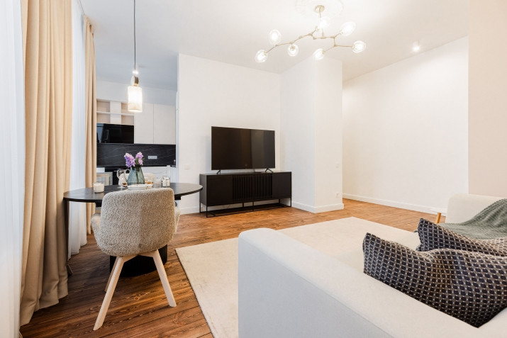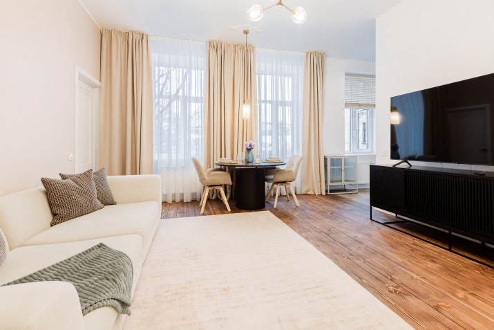 Эксклюзивная двухкомнатная квартира в тихом центра Риги Редкое предложение: высококачественная и действительно просторная двухкомнатная квартира, не тесная и не требующая компромиссов. Здесь пространство предназначено для жизни, а не просто для существования. Квартира сдается до лета, возможны другие условия аренды. Планировка: просторный холл светлая гостиная, совмещенная с кухней отдельная спальня с просторной гардеробной ванная комната с душем Квартира полностью оборудована и готова к заселению вы можете въехать немедленно. Интерьер продуман до мелочей, с акцентом на комфорт, функциональность и спокойный ритм жизни. Расположение Тихий центр: В нескольких минутах ходьбы: самые красивые здания Риги в стиле модерн отличные рестораны и кафе театры, галереи и культурные объекты набережная и центр города бизнес-центры и удобный доступ к общественному транспорту
