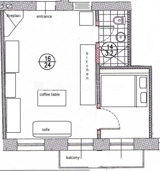 Фасадный дом, лифт, лестничная клетка после косметического ремонта, одна изолированная комната, студио, кухня объединена с гостинной, высокие потолки, центральное отопление, полная отделка , новая сантехника, совмещённый санузел, душевая кабина, встроенная кухня, диван, двуспальная кровать, кухонный стол, журнальный столик, кухонные стулья, шкаф, сдаётся со всем видимым на фотографии оборудованием, освобождена, в проекте ещё доступны квартиры, заключая договор аренды Вам нужно будет оплатить первый месяц аренды, а также внести залоговый депозит в размере месячной арендной платы., за данный объект комиссия за посреднические услуги взымается в размере половины месячной арендной платы данного объекта, о цене возможно договоритсья, CITY REAL ESTATE ID - 426659