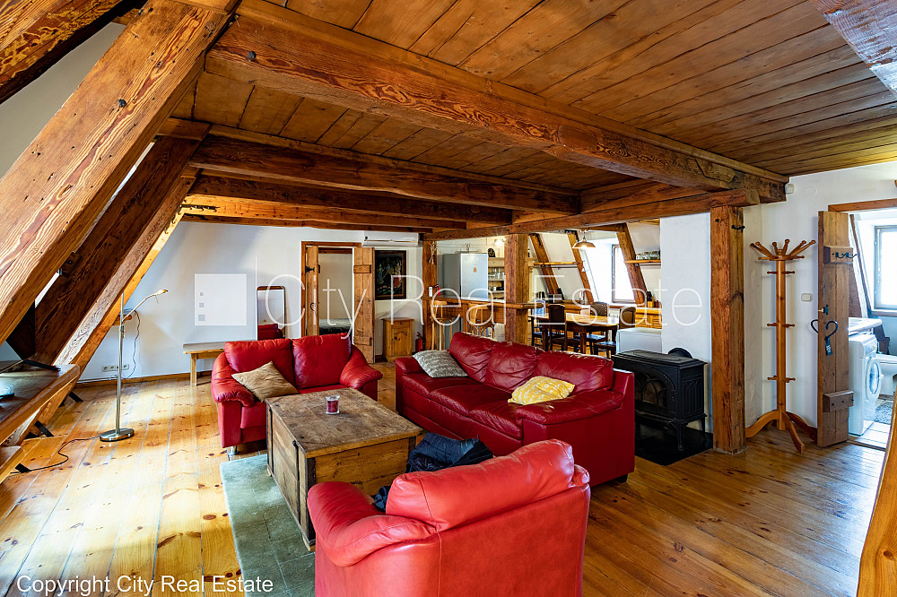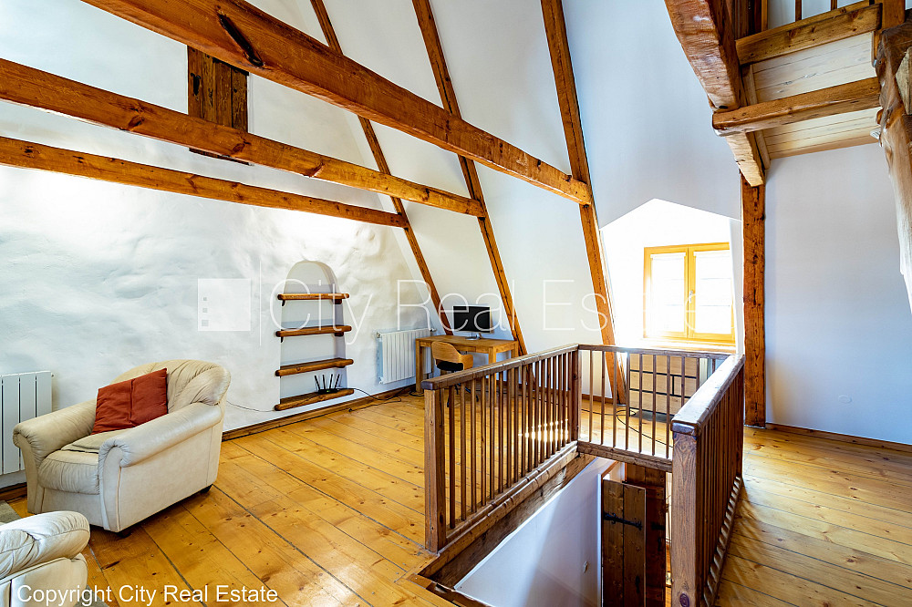 Фасадный дом, реновированный дом, подъездная дорога покрыта брущаткoй, вход с улицы, окна выходят в обе стороны дома, количество спален 2 шт., трёхэтажный, студио, кухня объединена с гостинной, kабинет, центральное отопление, пластиковые стекло-пакетные окна, покрашенные стены, деревянный пол, совмещённый санузел, ванна, душевая кабина, антикварная мебель, встроенная кухня, встроенные стенные шкафы, диван, двуспальная кровать, кухонный стол, журнальный столик, стулья, кресла для отдыха, шкаф, шкаф для одежды, шкаф для посуды, зеркало, кондиционер, телевизор, холодильник, электрическая плита, духовка, микроволновая печь, стиральная машина, oптический интернет, круглосуточное видеонаблюдение, закрытая лестничная клетка, таршеры, настольные лампы, без животных, комиссия за посреднические услуги не взымается, CITY REAL ESTATE ID - 510571