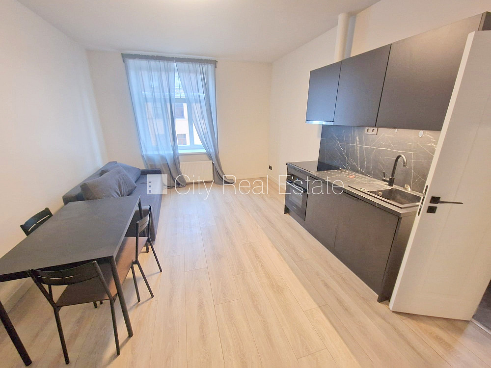 Фасадный дом, реновированный дом, территория обнесена забором, вход с улицы, лифт, лестничная клетка после капитального ремонта, окна выходят на улицу, широкий вид из окна, студио, кухня объединена с комнатой, высокие потолки, центральное отопление, пластиковые стекло-пакетные окна, покрашенные стены, новая сантехника, ламинатный пол, совмещённый санузел, душевая кабина, туалет, встроенная кухня, встроенные стенные шкафы, раздвижной угловой диван, кухонный стол, стулья, холодильник, электрическая плита, духовка, вытяжка, стиральная машина, лестничная клетка на кодовом замке, сдаётся со всем видимым на фотографии оборудованием, на девять месяцев, на 1 год, на 2 года, возможно продлить договор, освобождена, заключая договор аренды Вам нужно будет оплатить первый месяц аренды, а также внести залоговый депозит, за данный объект комиссия за посреднические услуги взымается в размере половины месячной арендной платы данного объекта, CITY REAL ESTATE ID - 517974