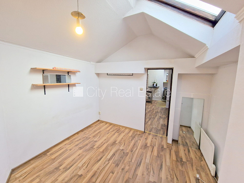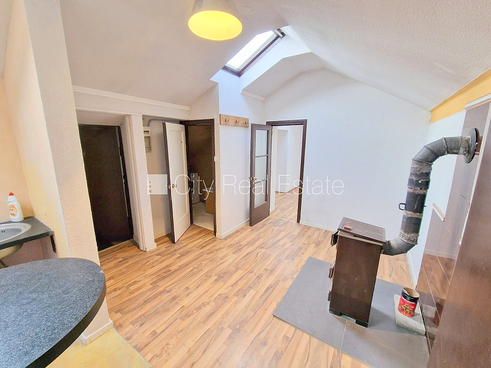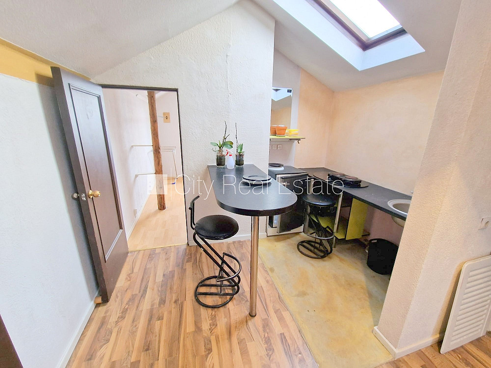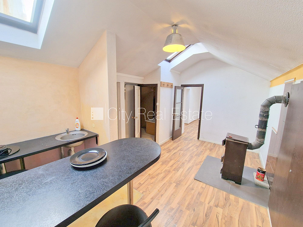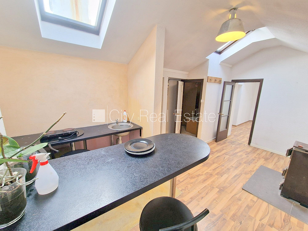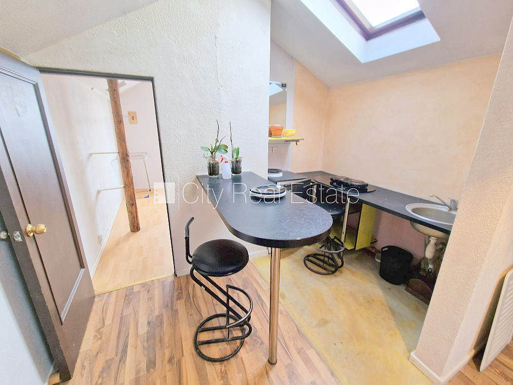 Фасадный дом, закрытый двор, вход с улицы, мансарда, лестничная клетка после косметического ремонта, окна выходят на улицу, количество спален 2 шт., изолированные комнаты 2 шт., студио, кухня объединена с комнатой, высокие потолки, отопление дровами, электрическое отопление, бойлер для горячей воды, пластиковые стекло-пакетные окна, мансардные окна, металлическая дверь, наклеенные обои, ламинатный пол, кафельный пол, совмещённый санузел, ванна, туалет, встроенная кухня, холодильник, электрическая плита, стиральная машина, закрытая лестничная клетка, освобождена, заключая договор аренды Вам нужно будет оплатить первый месяц аренды, а также внести залоговый депозит в размере месячной арендной платы., за данный объект комиссия за посреднические услуги взымается в размере половины месячной арендной платы данного объекта, CITY REAL ESTATE ID - 431476