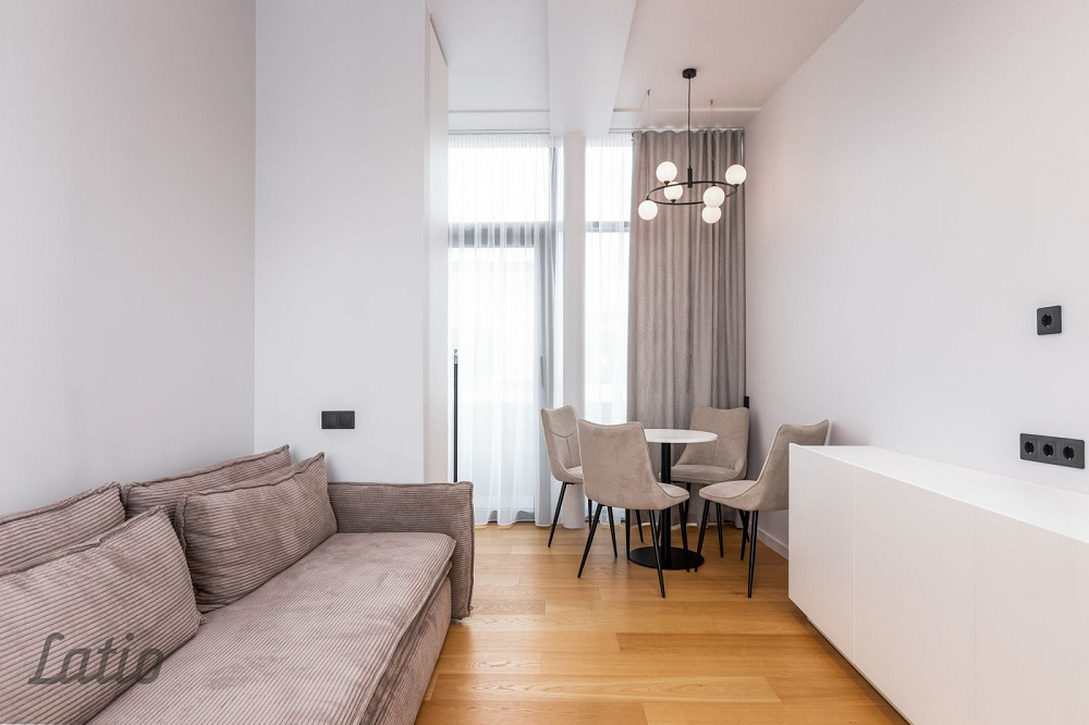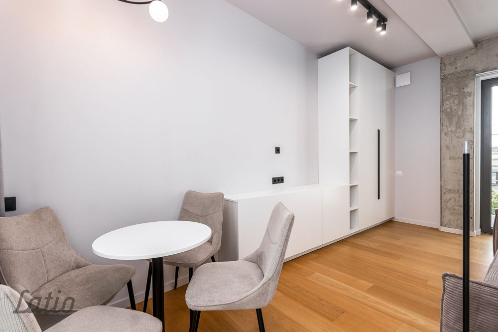 Izīrē pilnībā aprīkotu un mēbelētu studijas tipa dzīvokli pašā Rīgas centrā Stabu ielā 2A, jaunajā projektā. Dzīvoklis ir ar modernu interjeru, diviem balkoniem (12.6 m un 4 m), liftu un A klases energoefektivitāti ļoti zemi komunālie maksājumi.