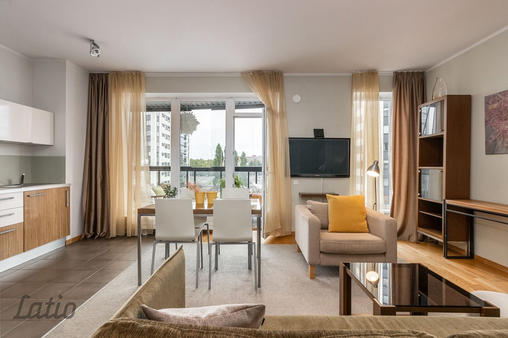 Izīrē pilnībā mēbelētu un ar sadzīves tehniku aprīkotu trīsistabu dzīvokli un pazemes autostāvvietu