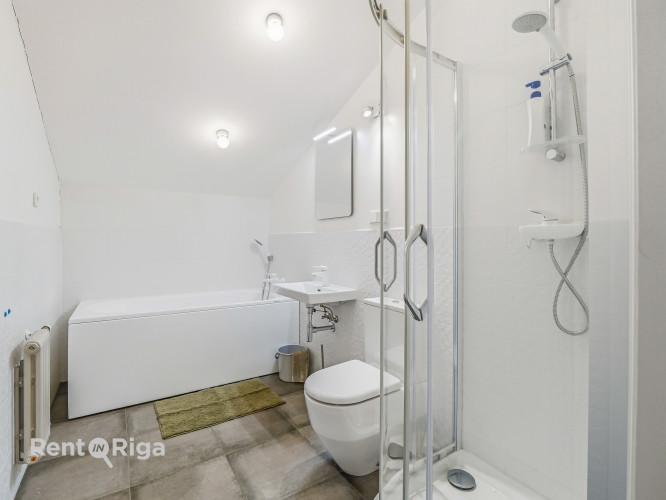 Izīrē plašu un elegantu mansarda dzīvokli ekskluzīvā vietā Ogļu ielā 30, Rīgā. Piedāvājumā unikāls mansarda dzīvoklis mājas 3. stāvā, kas aizņem visu ēkas stāva platību. Šī ir lieliska izvēle tiem, kuri novērtē mieru, kvalitāti un skatu no virtuves paveras brīnišķīgs skats uz Daugavu, jo māja atrodas vien pāris soļu attālumā no upes (2. līnijā). Dzīvokļa plānojums un ērtības: 3 istabas, no kurām 2 ir atsevišķas guļamistabas katrai savs sanitārais mezgls. Kopā: 1 vannasistaba ar vannu un dušu, 1 vannasistaba ar vannu un logiem uz Daugavu, 1 atsevišķa WC. Slēgta mājas teritorija nodrošina papildu drošību un privātumu. Plaša virtuve ar BOSCH tehniku, 2 ledusskapjiem un visu nepieciešamo aprīkojumu (trauki, virtuves piederumi, katli u.c.). Virtuvē un viesistabā: iebūvētā virtuve, ēdamgalds, krēsli, dīvāns, TV ar internetu. Atsevišķa saimniecības telpa ar veļasmašīnu un žāvētāju. Viena no guļamistabām šobrīd ir bez mēbelēm piemērota gan kā guļamistaba, gan kā darba kabinets/birojs. TV ar internetu jau pieejams. Autostāvvieta slēgtā pagalmā: 50 EUR mēnesī (konkrēta, garantēta vieta). Drošības depozīts: 1500 EUR. Aptuvenie komunālie maksājumi: Ziemā ap 350 EUR. Vasarā ap 200 EUR. Droši rakstiet vai zvaniet, lai vienotos par apskati!
