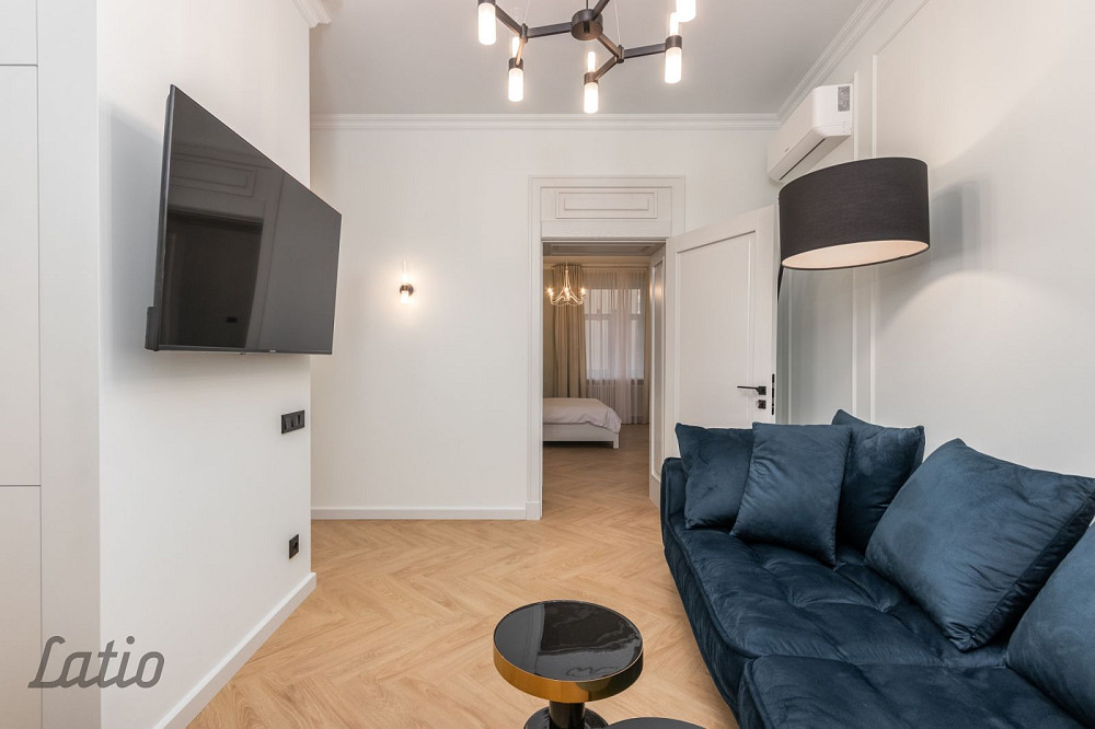 Lielisks 3 istabu dzīvoklis, 76 kv.m, 2/5 st., pirmskara laika māja, jauns lifts, gaumīgi iekārtots, mēbelēts, pēc kapitālā remonta, divas mājīgas guļamistabas, omulīga viesistaba ar ērtu iebūvētās virtuves zonu un kvalitatīvu sadzīves tehniku, ir TV, veļas mašīna, kondicionieris. Automašīnas stāvvieta pie mājas nav, bet tuvumā ir lielas izvēles iespējas novietot auto arī maksas stāvvietās. Laba atrašanās vieta- Vecrīga pastaigas attālumā, tuvu dažādi veikali, kafejnīcas, transports.