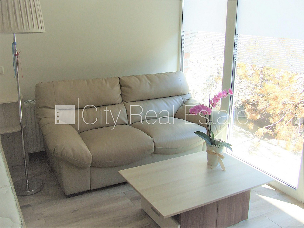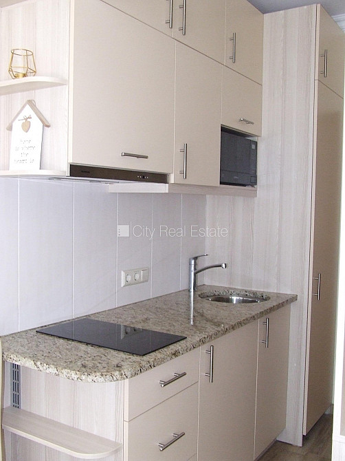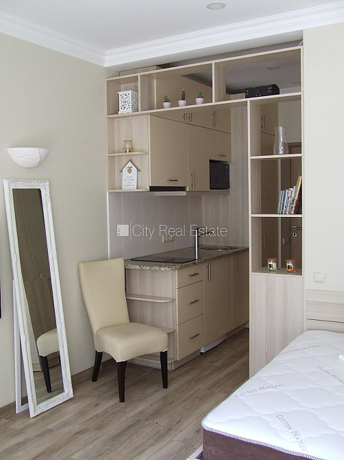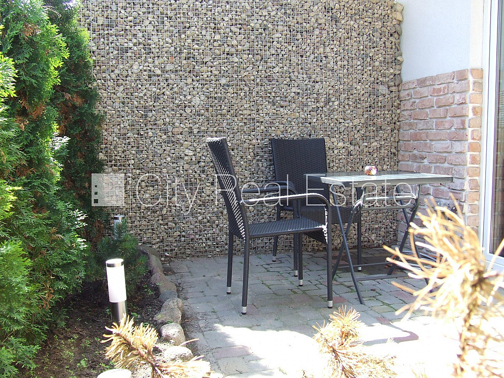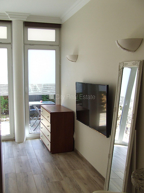 Новостройка, благоустроенная озеленённая территория, закрытая территория, первый этаж с садом, окна выходят во двор, студио, кухня объединена с комнатой, центральное отопление, пластиковые стекло-пакетные окна, ламинатный пол, кафельный пол, совмещённый санузел, ванна, встроенная кухня, диван, кровать, телевизор, холодильник, электрическая плита, микроволновая печь, стиральная машина, интернет, круглосуточное видеонаблюдение, закрытая лестничная клетка, лестничная клетка на кодовом замке, сдаётся со всем видимым на фотографии оборудованием, освобождена, стратегически выгодное место, CITY REAL ESTATE ID - 506947