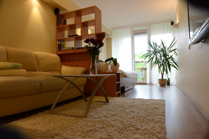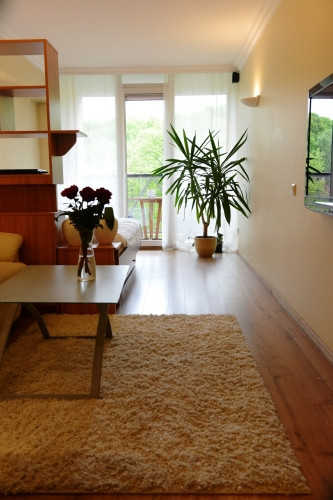 Однокомнатная квартира-студия в новом проекте на улице Klijanu с террасой в сторонy парка. + вся необходимая бытовая техника + Возможное парковочное место во дворе (50 €) + коммунальные платежи ~80 € летом, 130 € зимой) + видеонаблюдение в здании При заключении договора необходимо внести арендную плату за первый и последний месяц, залог в размере арендной платы за один месяц + комиссию в размере 50% от арендной платы за один месяц.