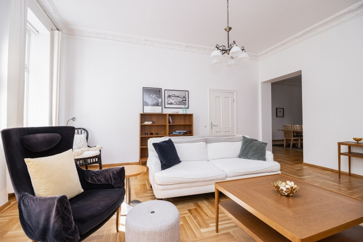 Предлагается в аренду 5-х комнатная квартира в тихом центре Риги. Квартира может похвастаться не только удобным расположением в самом центре Риги, но и красивым отреставрированным зданием в стиле модерн с лифтом и парковкой, а также уютной и гостеприимной планировкой комнат. Высокие (3,2 м) потолки создают дополнительное ощущение простора, широкие окна пропускают в квартиру естественный свет, внутренний двор обеспечивает тишину, вам просто понравится проводить время дома, независимо от того, принимаете ли гостей или наслаждаетесь тишиной. Эта квартира предлагает лучшее - тихий оазис в самом центре города. В паре шагов два красивых парка для долгих прогулок вдоль канала, множество ресторанов и стильных кафе буквально за углом, Национальный художественный музей, Национальный театр и концертный зал для любителей культуры, а также небольшие магазины и торговые центры. Эта квартира действительно предлагает лучшее, что может предложить Рига. Квартира состоит из трех спален, просторной гостевой комнаты, кухни с обеденной зоной, кабинетной ниши, двух санузлов и лоджии. Квартира имеет гарантированную парковку во дворе. Уборка квартиры возможна за дополнительную плату. В квартире установлены индивидуальные счетчики тепла.