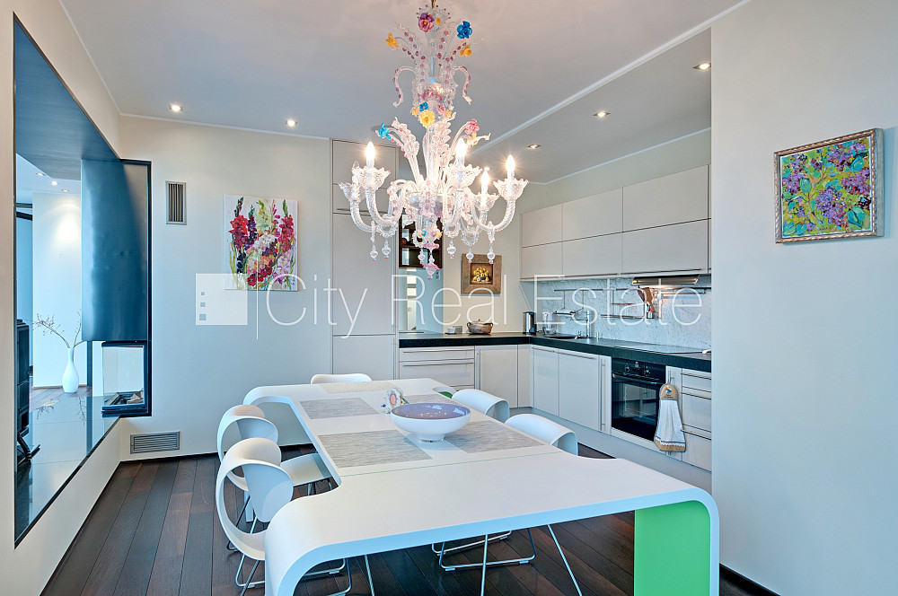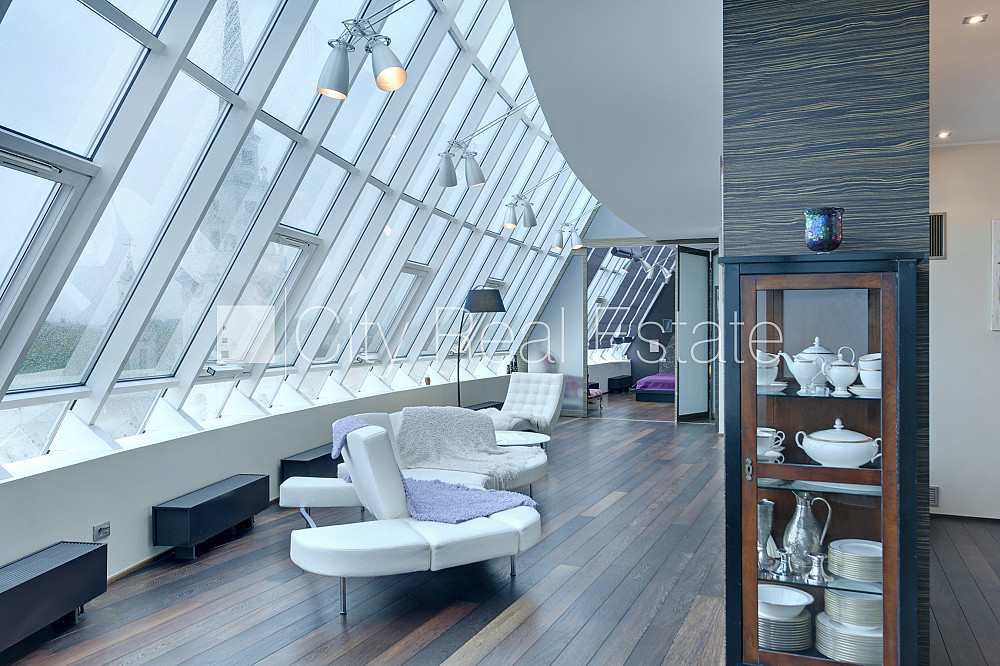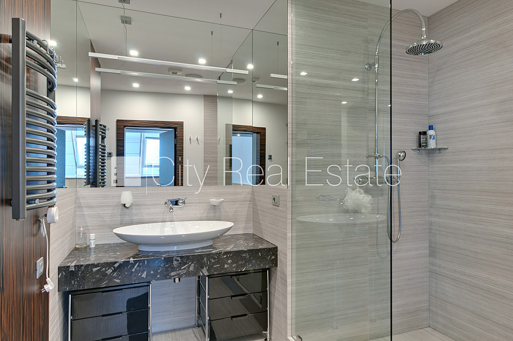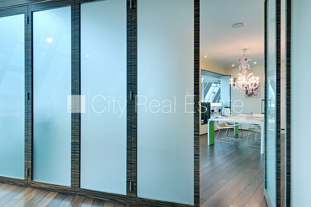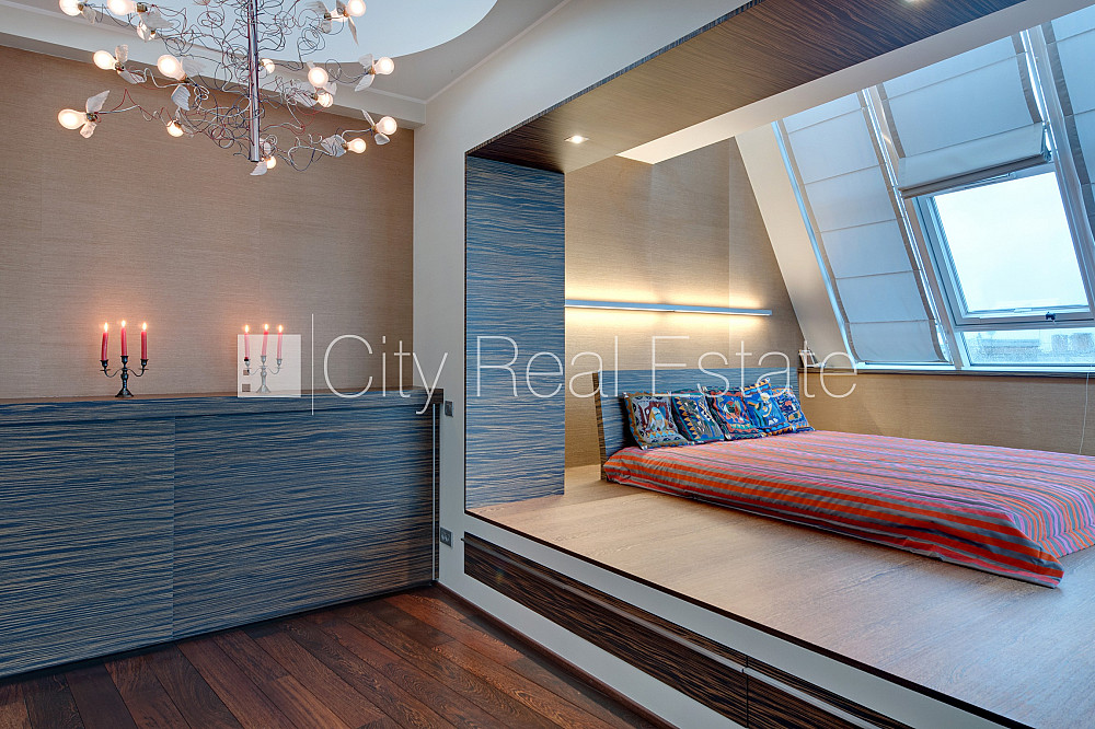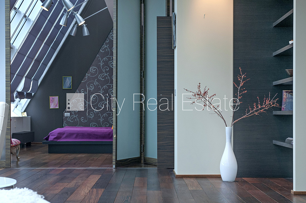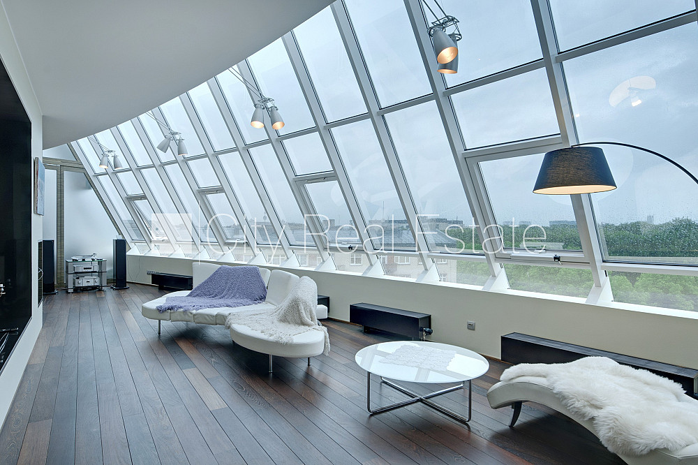 Проект - Centra Nams (Центра Намс), благоустроенная озеленённая территория, подземная стоянка, апартаменты люкс, лифт, верхний этаж с терассой, терасса на крыше, окна выходят на сторону парка, широкий вид из окна, количество спален 2 шт., двухэтажный, одна проходная комната, гардеробная, подсобка, прачечная, высокие потолки, радиаторы с терморегуляцией, центральное отопление, два уровня, полы с подогревом, большие витрины, мансардные окна, двойная металическая дверь, покрытие пола из дуба, паркетный пол, кафельный пол, два санузла, ванна, душевая кабина, встроенная кухня, встроенные стенные шкафы, диван, двуспальная кровать, стол, письменный стол, стулья, кресла для отдыха, зеркало, кондиционер, телевизор, холодильник, холодильная камера, посудомоечная машина, электрическая плита, духовка, микроволновая печь, стиральная машина, сушилка белья, oптический интернет, сигнализация, закрытая лестничная клетка, до парка 150 м, стратегически выгодное место, до Старой Риги 400 м, без животных, о цене возможно договоритсья, CITY REAL ESTATE ID - 424537