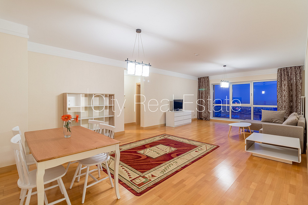 Проект - Panorama Plaza (Панорама Плаза), новостройка, во дворе детская игровая площадка, лифт, количество спален 3 шт., студио, кухня объединена с гостинной, подсобка, полы с подогревом в ванной, два санузла, ванна, душевая кабина, встроенная кухня, встроенные стенные шкафы, кровать, двуспальная кровать, холодильник, посудомоечная машина, электрическая плита, духовка, вытяжка, стиральная машина, круглосуточное видеонаблюдение, круглосуточная охрана, система входных пропусков, сдаётся со всем видимым на фотографии оборудованием, CITY REAL ESTATE ID - 428160