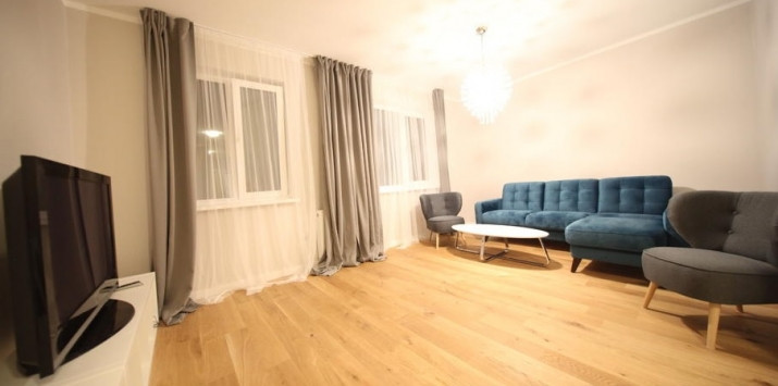 Сдается красивая, светлая и просторная квартира в прекрасном месте. Квартира новая, только что отремонтированная. Деревянные полы, мебель, отличное кухонное оборудование (электрическая поверхность, духовка, посудомоечная машина, вытяжка, холодильник), а также каменная рабочая поверхность на кухне, стиральная машина и телевизор. Электрическое отопление, интеллектуальные радиаторы (регулируемые в разных режимах работы или отдыха). Чистая лестничная клетка с кодовым замком. Во дворе есть бесплатная парковка. Рядом торговый центр Spice, общественный транспорт. 10 минут до центра, 10 мин. до аэропорта Рига.