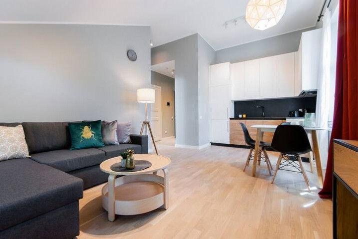 Сдается новая, уютная и красивая двухкомнатная квартира (гостиная и кухня совмещены). Полностью оборудованная кухня - посудомоечная машина, холодильник. Студенты приветствуются. Выглядит точно так же, как на фотографиях. Отличная транспортная сеть. Рижский университет Страдиня всего в 25 минутах ходьбы (11 минут на общественном транспорте). Стадион Рижского технического университета в 18 минутах ходьбы Центр архитектуры и медиа RISEBA H2O Для долгосрочной аренды квартира может быть меблирована. Во дворе имеется парковочное место за дополнительную плату 50 eur в месяц, закрытая территория.
