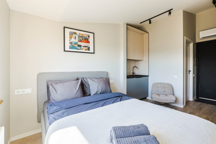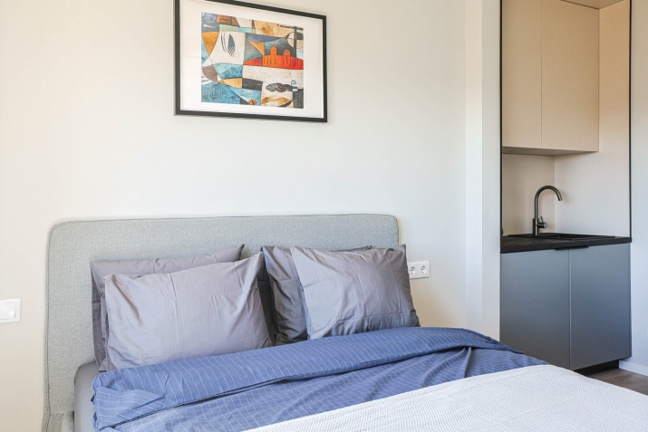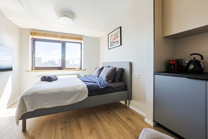 Сдается стильная квартира-студия в центре Риги. Полностью новая отличная возможность стать первым арендатором. Квартира расположена на 7 этаже, откуда открывается приятный вид на крыши Риги, особенно атмосферный в вечернее время. Планировка компактная и функциональная (16 м): жилая зона, объединённая с кухней, отдельный санузел, удобный коридор с местами для хранения. Интерьер светлый, аккуратный и продуманный. Квартира полностью готова к проживанию и оснащена всем необходимым: кухонная техника, стиральная машина, телевизор, кофемашина, чайник, шкаф, посуда, постельное бельё и др. Установлен кондиционер для комфортного проживания в любое время года. В здании есть лифт. Расположение улица Эрнеста Бирзниека-Упиша. Развитый район центра с современной инфраструктурой. Рядом Вермана парк и удобный общественный транспорт. Центральный вокзал, Origo и Stockmann находятся в нескольких минутах. Всё необходимое в шаговой доступности. Возможна аренда на короткий срок (цена зависит от периода). Комиссия агентства 50% от месячной аренды при подписании договора.