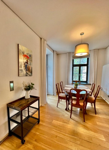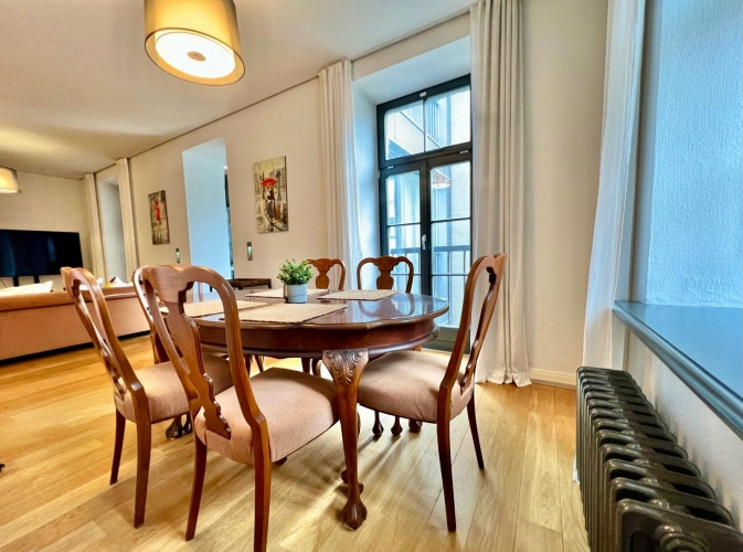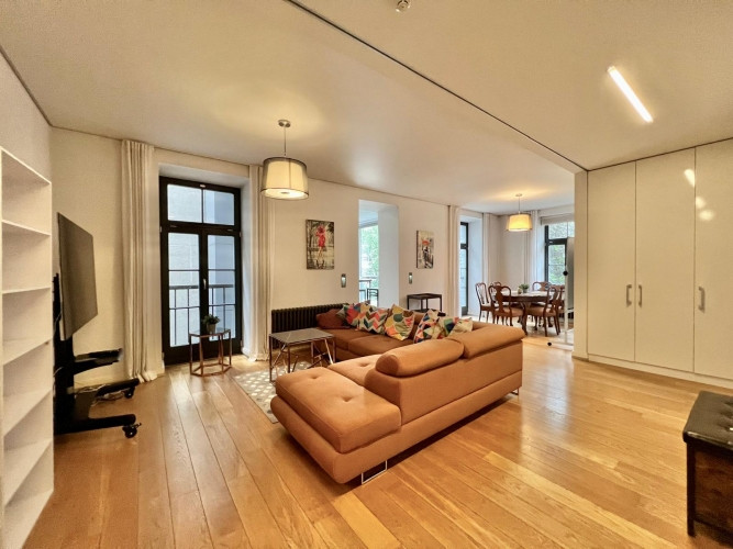 Сдаётся 4-комнатная квартира (108 м) на тихой и зелёной улице ул. Хуго Целминя Планировка: - Три спальни, одна с отдельной ванной комнатой; - Просторная гостиная с открытой кухонной зоной; - Гостевой санузел; - Прихожая с встроенным шкафом. Преимущества квартиры: - Полностью оборудована бытовой техникой (в т.ч. стиральная и посудомоечная машина); - Качественная отделка и современный дизайн интерьера; - Индивидуальное парковочное место во дворе; - Тихая и зелёная среда с удобным доступом ко всей городской инфраструктуре.