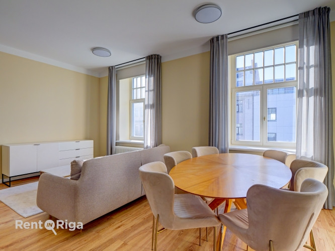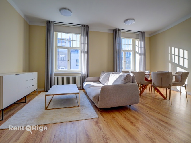 Стильная 2-комнатная квартира в югендстильном доме в центре Риги Живите там, где история встречается с комфортом. Всего в нескольких шагах от Тихого центра, в полностью реновированном и утеплённом доме в стиле югендстиль с лифтом KONE, видеонаблюдением и закрытой благоустроенной территорией, предлагается элегантная и продуманно обустроенная 2-комнатная квартира. Планировка: просторная гардеробная (walk-in) в коридоре, светлая гостиная с кухонной зоной, отдельная спальня и стильная ванная комната с душем. Квартира полностью оборудована встроенной кухней, кроватью, диваном, вместительными шкафами, дизайнерскими светильниками и всем необходимым для комфортной жизни. Дополнительные преимущества: Круглосуточный сервис (24/7) Прозрачная система счетов Арендная плата: 750 EUR/мес Обслуживание: 70 EUR/мес (фиксированная плата) Коммунальные платежи по индивидуальному потреблению Залог в размере 2 месяцев аренды Минимальный срок аренды 1 год