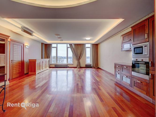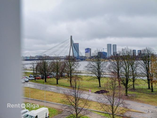 В жилом комплексе "Centra Namās" сдается в аренду 4-комнатная квартира с подземным парковочным местом (включено в стоимость). Из окон квартиры открывается великолепный вид на реку Даугава. Гостиная, 3 спальни, 2 ванные комнаты, гардеробная комната. В квартире есть кондиционер. Рядом парк, школы и детские сады, теннисные корты через дорогу. 5 минут пешком до спортивно-развлекательного района Андреоста рестораны, бары, яхт-клуб.