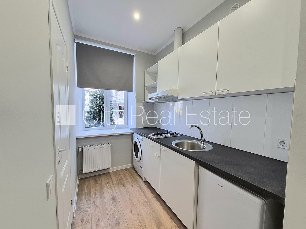 Здание во дворе, благоустроенная озеленённая территория, закрытый двор, возможность аренды парковки, вход со двора, лестничная клетка после капитального ремонта, окна выходят во двор, изолированная комната, кухня, высокие потолки, центральное отопление, бойлер для горячей воды, пластиковые стекло-пакетные окна, металлическая дверь, ламинатный пол, совмещённый санузел, душевая кабина, туалет, встроенная кухня, диван, кухонный стол, журнальный столик, кухонные стулья, шкаф, холодильник, газовая плита, вытяжка, стиральная машина, закрытая лестничная клетка, сдаётся со всем видимым на фотографии оборудованием, таршер, на 1 год, возможно продлить договор, освобождена, за данный объект комиссия за посреднические услуги взымается в размере половины месячной арендной платы данного объекта, CITY REAL ESTATE ID - 513914