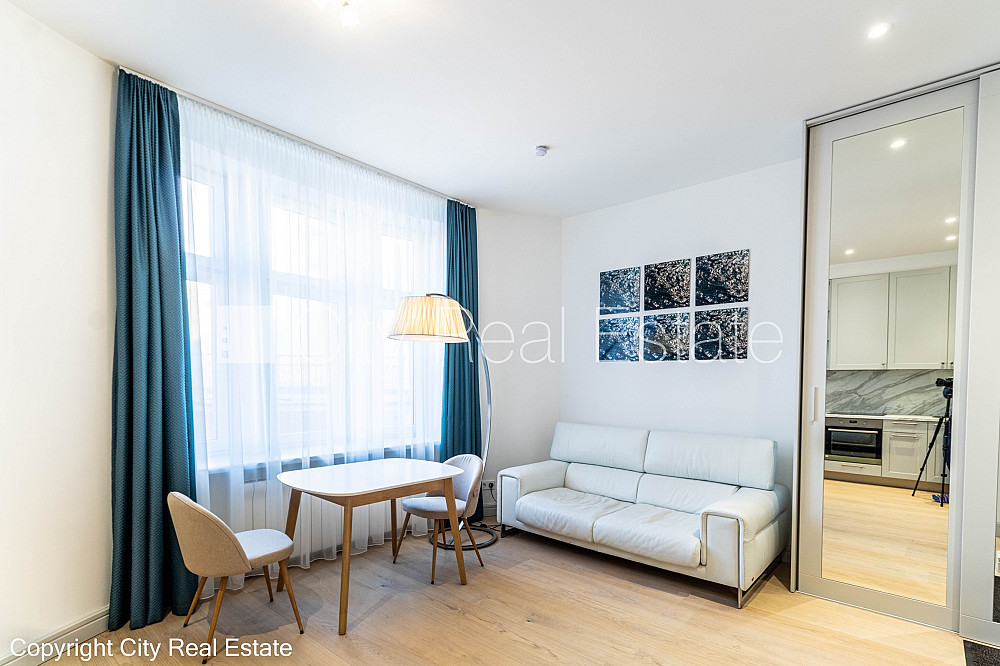 Здание во дворе, реновированный дом, благоустроенная озеленённая территория, закрытый двор, вход со двора, лифт, лестничная клетка после капитального ремонта, окна выходят во двор, количество спален 1 шт., студио, кухня объединена с гостинной, высокие потолки, центральное отопление, счетчики отопления, индивидуальная система учета отопления, полная отделка , деревянные стекло-пакетные окна, покрашенные стены, новая сантехника, паркетный пол, кафельный пол, совмещённый санузел, ванна, туалет, встроенная кухня, встроенные стенные шкафы, диван, кровать, кухонный стол, стулья, комод, телевизор, холодильник, электрическая плита, духовка, вытяжка, стиральная машина, домофон, закрытая лестничная клетка, сдаётся со всем видимым на фотографии оборудованием, освободится в августе, заключая договор аренды Вам нужно будет оплатить первый месяц аренды, а также внести залоговый депозит, за данный объект комиссия за посреднические услуги взымается в размере половины месячной арендной платы данного объекта, CITY REAL ESTATE ID - 507361