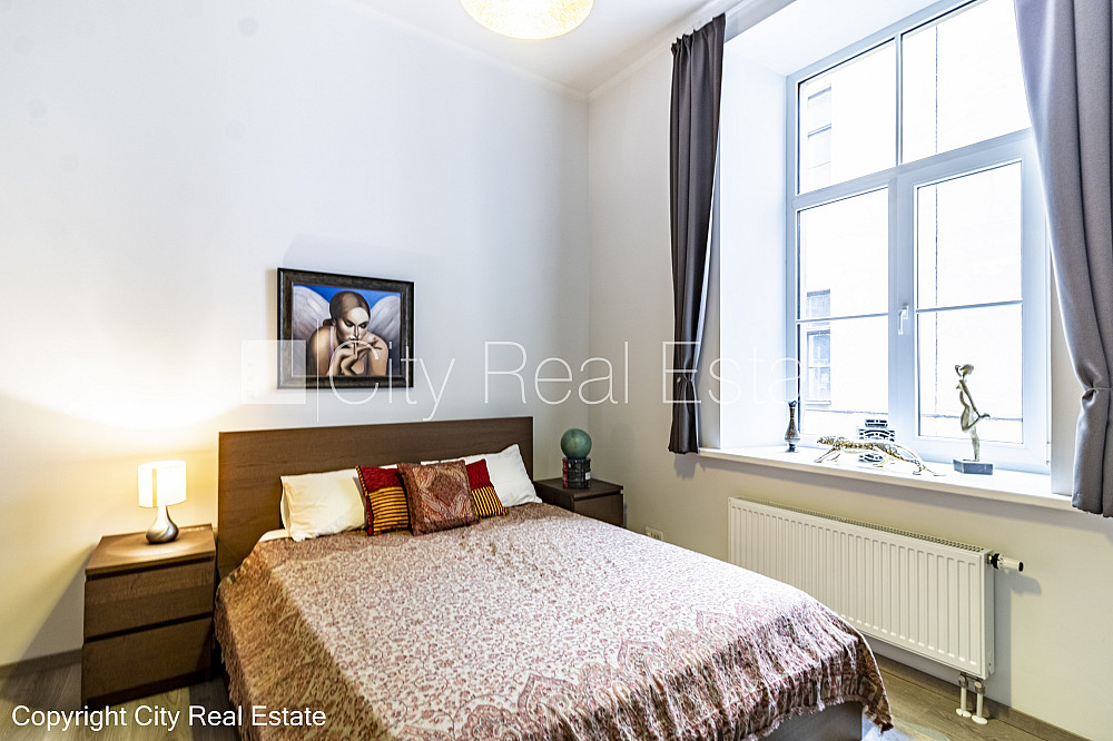 Здание во дворе, реновированный дом, закрытый двор, вход со двора, бельэтаж, лестничная клетка после капитального ремонта, окна выходят во двор, количество спален 3 шт., изолированные комнаты 3 шт., гостиная 40,2 м2, одна проходная комната, кухня 24,9 м2, kабинет 5,9 м2, подсобка 2,6 м2, высокие потолки, камин, газовое отопление, полная отделка , пластиковые стекло-пакетные окна, металлическая дверь, новая сантехника, встроенная светотехника, ламинатный пол, кафельный пол, новая электроинсталяция, помененная канализационная система, совмещённый санузел, душевая кабина, туалет, встроенная кухня, встроенные стенные шкафы, диван, кровать, кухонный стол, стулья, холодильник, электрическая плита, духовка, вытяжка, стиральная машина, сушилка белья, закрытая лестничная клетка, сдаётся со всем видимым на фотографии оборудованием, на 1 год, на 2 года, возможно продлить договор, до пяти персон, освобождена, без животных, заключая договор аренды Вам нужно будет оплатить первый месяц аренды, а также внести залоговый депозит, CITY REAL ESTATE ID - 510329