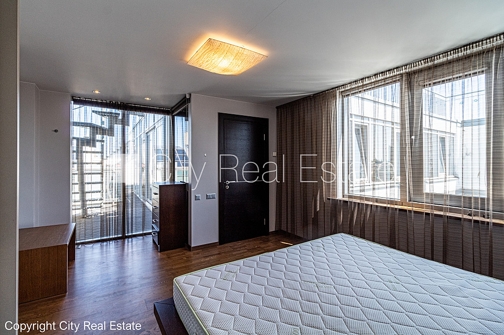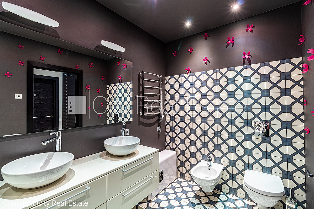 Фасадный дом, реновированный дом, поменянное покрытие крыши, фасад с декоративной штукатуркой, благоустроенная озеленённая территория, подъездная дорога покрыта брущаткoй, въездные ворота оснащены автоматической подъёмной системой, гараж на одну машину, объект охраняет физическая охрана, апартаменты люкс 205 м2, лифт, верхний этаж с терассой, терасса, количество спален 3 шт., трёхэтажный, помещение для отдыха, гардеробная, kабинет, высокие потолки, радиаторы с терморегуляцией, камин, автоматическая система отопления, счетчики отопления, индивидуальная система учета отопления, полная отделка , три уровня, полы с подогревом, большие витрины, алюминевые стекло-пакетные окна, встроенная светотехника, паркетный пол, три санузла, ванна, душевая кабина, биде, встроенная кухня, встроенные стенные шкафы, диван, кровать, двуспальная кровать, стол, стулья, кресла для отдыха, кондиционер, холодильник, посудомоечная машина, электрическая плита, духовка, стиральная машина, oптический интернет, сигнализация, круглосуточное видеонаблюдение, круглосуточная охрана, возможна уборка, закрытая лестничная клетка, до парка, стратегически выгодное место, до остановки трамвая, CITY REAL ESTATE ID - 515987