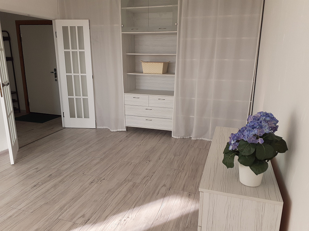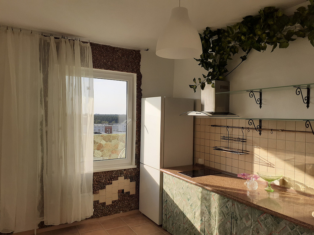 Собственник продаёт приятную 2-х комнатную квартиру 104 серии с характерной ей удобной планировкой и великолепным панорамным видом на Бикерниекский лес и Рижские высотки за ним. Продаётся с обстановкой, видимой на фото (мебель, полки, занавески), а также бытовой техникой (индукционная плита, фильтр питьевой воды, вытяжка, стиральная машина, исключая холодильник). Не угловая, находится в середине дома. Освобождена, без долгов. Дом обхозяйствует товарищество жильцов DzĪB “Hipokrāta 13”. Два лифта (один грузовой). Один из самых зелёных микрорайонов Риги. Хорошая инфраструктура: продуктовые магазины (Rimi, Beta, Mere, Lidl, Maxima, Sky), детские сады, школа, медицинские учереждения, игровые/спортивные площадки, торговые центры. Ikea и TC “Sāga”/Decathlon находятся на расстоянии приятной пешей прогулки. Близко расположены остановки общественного транспорта. Для активностей на свежем воздухе доступен Бикерниекский лес и озёра. Квартира светлая, деревья и ближайшие дома её не затеняют. Прямые солнечные лучи освещают в послеобеденное время, поэтому она не слишком нагревается летом, а зимой любой солнечный свет - это приятный, тёплый бонус. Красивые закаты гарантированны.