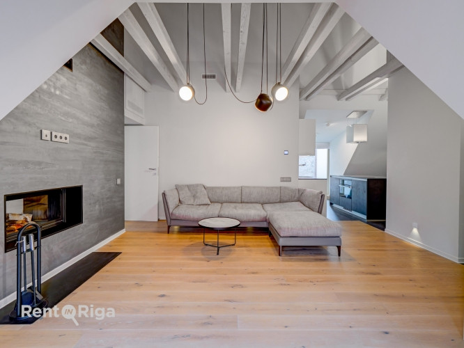 Ниже - видеообзор квартиры. Дыхание старины и спокойствие старого города превращают Vilhelma Nami в настоящий оазис для души. Здания являются частью ансамбля памятников культуры государственного значения. Они были построены в XVII- XVIII веках как склады. Благодаря осуществленной в 2013-2016 г. реконструкции в Vilhelma Nami вновь вернулась жизнь. Совмещены мощные исторические стены с современным интерьером и новейшими достижениями в строительстве. Есть собственный СПА и небольшой уютный спортзал. Имеется также небольшой, закрытый со всех сторон внутренний дворик с видом на Англиканскую церковь. Завершает картину холл, где можно попить кофе, посмотреть телевизор, или даже отметить важное событие. Для всех квартир оборудовано помещение для хранения вещей. В квартире одна спальня, 2 санузла, камин, система "умный дом". Из окон открывается вид на Домский собор. Светильники из коллекции японского дизайнера Ingo Maurer, компаний Flos, Vibia, Bover и Delightfull. Камин французской компании Focus. В санузлах сантехника испанской дизайнерской фирмы Rexa и итальянской фирмы Falper, плитка Inalco. Мебель представлена итальянскими брендами Poltrona Frau, Cattelan, Bonaldo, Flou, Hulsta и др. Кухня немецкой компанией Hulsta.