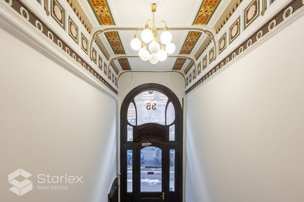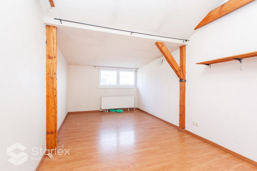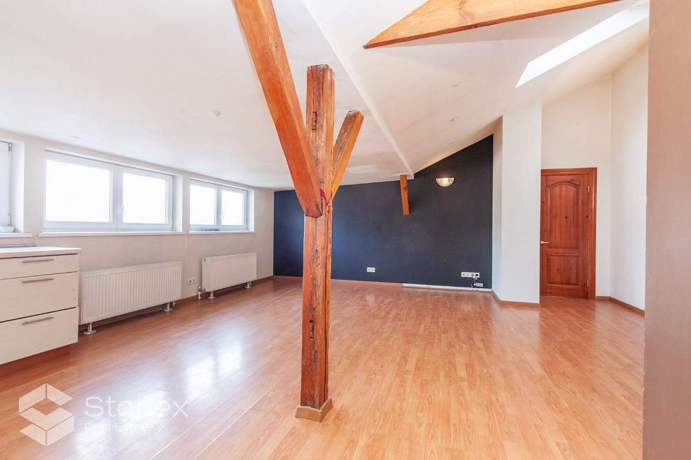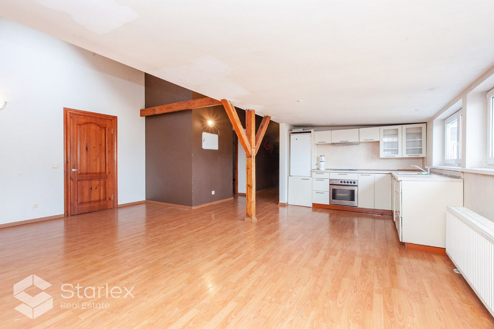 Plašs piecu istabu dzīvoklis trešajā stāvā ar logiem uz pagalmu. Augstie griesti, saglabājušās koka un parketa grīdas. Nepieciešams remonts.