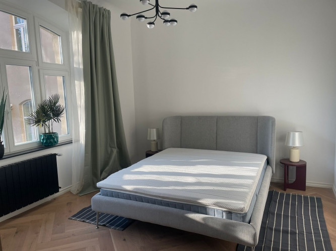 Продаётся солнечная и элегантная квартира в полностью отреставрированном историческом здании в центре Риги. С мебелью. Квартира расположена в отреставрированном довоенном кирпичном доме с восстановленными историческими элементами: аутентичными деталями лестницы, оригинальной архитектурой фасада и роскошным, ухоженным внутренним двором. Здание полностью отремонтировано, заменены все коммуникации, стояки, электропроводка, отреставрирован фасад и лестница. Квартира светлая, с высокими потолками и продуманной планировкой. Окна квартиры обращены во внутренний просторный ухоженный двор. Квартира предлагается с полной качественной внутренней отделкой, установленной сантехникой, встроенной кухней. Пол- паркет, деревянные стеклопакеты, новые радиаторы. - Земля в собственности - Центральное отопление с алокаторами (счетчиками тепла). - Закрытый мощеный двор с видеонаблюдением - Очень удобное расположение: вблизи находится общественный транспорт, торговые центры, 10 минут до Старого города. Есть и другие квартиры в данном проекте.