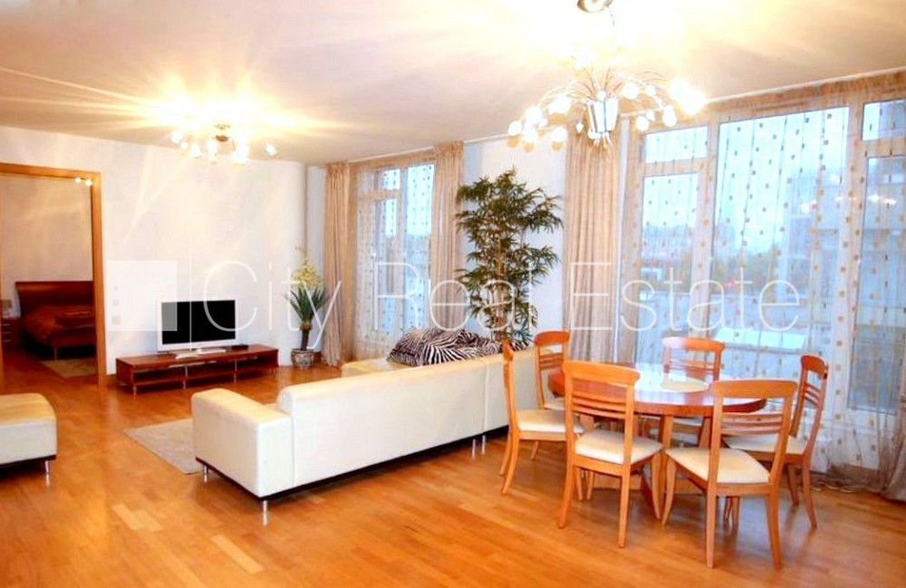 Проект - Centra Nams (Центра Намс), новостройка, благоустроенный озеленённый двор, подземная стоянка, система кондиционирования воздуха, количество спален 2 шт., изолированные комнаты, студио, кухня объединена с гостинной, гардеробная 4.87 м2, покрашенные стены, новая сантехника, паркетный пол, два санузла, ванна, душевая кабина, встроенная кухня, двуспальная кровать, гостинный стол, кресла для отдыха, шкаф для одежды, телевизор, холодильник, электрическая плита, духовка, вытяжка, стиральная машина, круглосуточная охрана, закрытая лестничная клетка, CITY REAL ESTATE ID - 517979