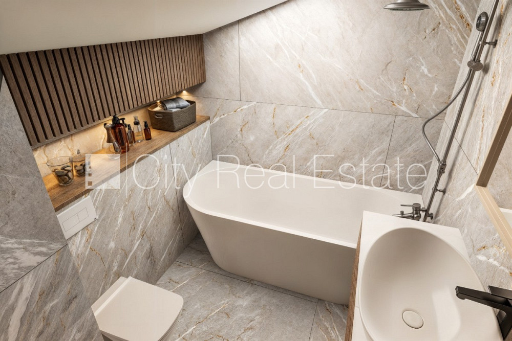 Проект - Kalpaka Residence, фасадный дом, реновированный дом, благоустроенная озеленённая территория, закрытая территория, вход с улицы, мансарда, лифт, лестничная клетка после капитального ремонта, терасса на крыше, широкий вид из окна, количество спален 2 шт., студио, кухня объединена с гостинной, tренажерный зал, отвесные потолки, центральное отопление, полы с подогревом в ванной, пластиковые стекло-пакетные окна, мансардные окна, ламинатный пол, кафельный пол, два санузла, ванна, душевая кабина, встроенная кухня, встроенные стенные шкафы, кондиционер, холодильник, посудомоечная машина, электрическая плита, духовка, стиральная машина, oптический интернет, домофон, круглосуточное видеонаблюдение, закрытая лестничная клетка, освобождена, стратегически выгодное место, CITY REAL ESTATE ID - 516773