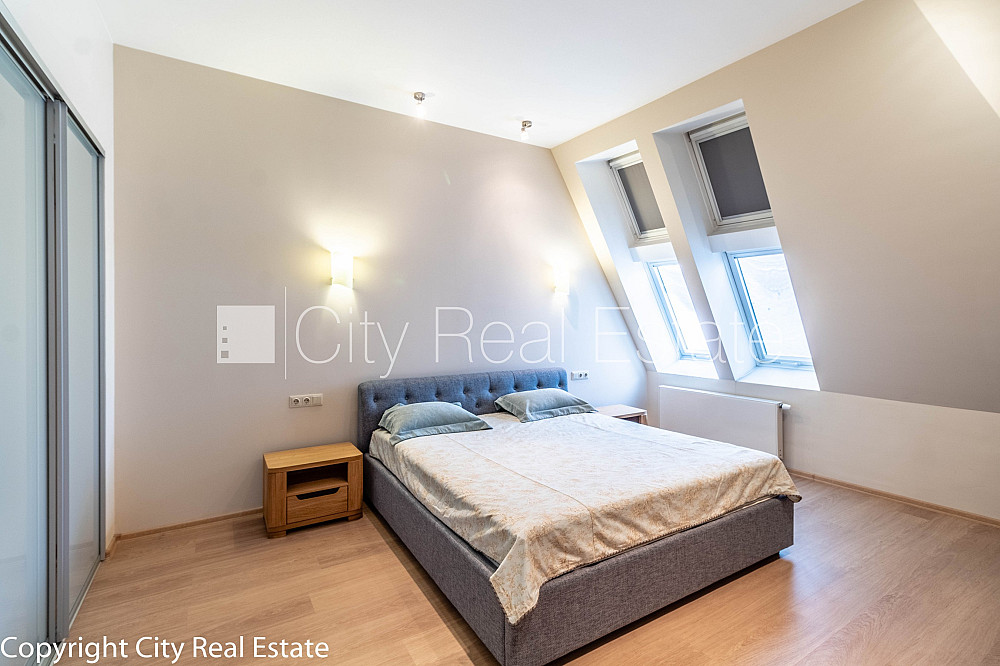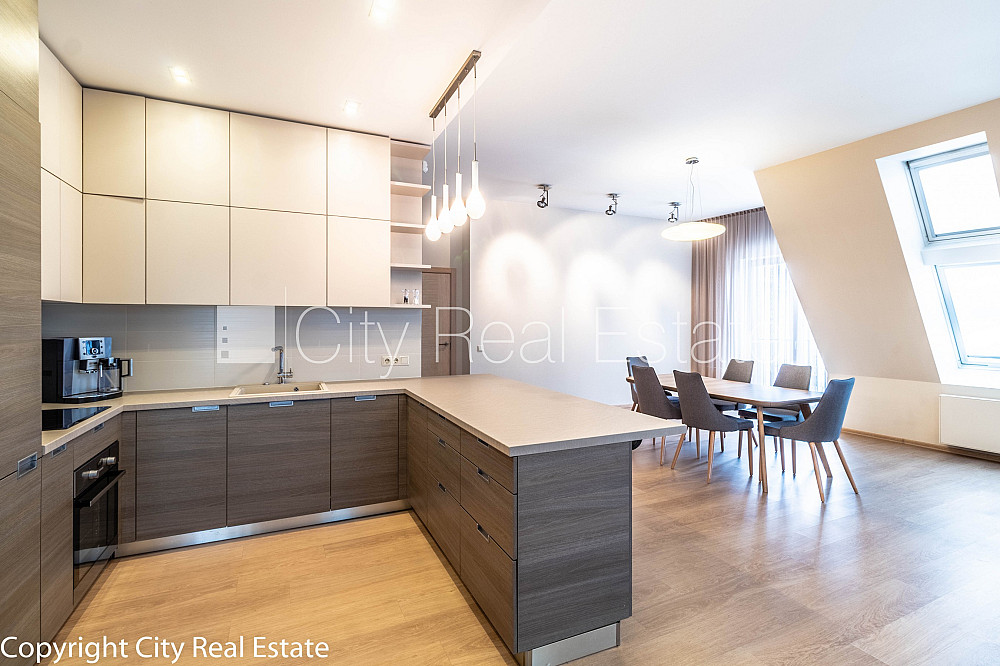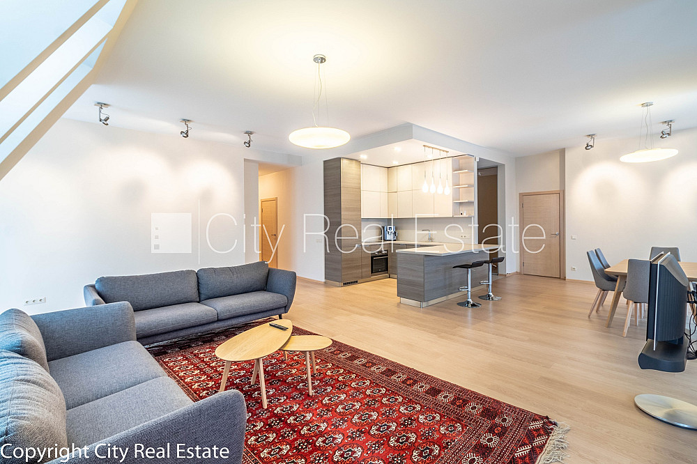 Проект - Rīdzenes Rezidence (Ридзенес Резиденце), фасадный дом, подъездная дорога покрыта брущаткoй, место для машины, подземная стоянка, апартаменты люкс 170 м2, лифт, французский балкон, окна выходят в обе стороны дома, изолированные комнаты 3 шт., студио, кухня объединена с гостинной, гардеробная, холл, подсобка, отвесные потолки, радиаторы с терморегуляцией, центральное отопление, счетчики отопления, индивидуальная система учета отопления, белая отделка, мансардные окна, металлическая дверь, паркетный пол, кафельный пол, новая электроинсталяция, два санузла, ванна, душевая кабина, биде, встроенная кухня, встроенные стенные шкафы, кондиционер, телевизор, холодильник, посудомоечная машина, электрическая плита, духовка, стиральная машина, интернет, круглосуточное видеонаблюдение, круглосуточная охрана, лестничная клетка на кодовом замке, освобождена, стратегически выгодное место, CITY REAL ESTATE ID - 425117
