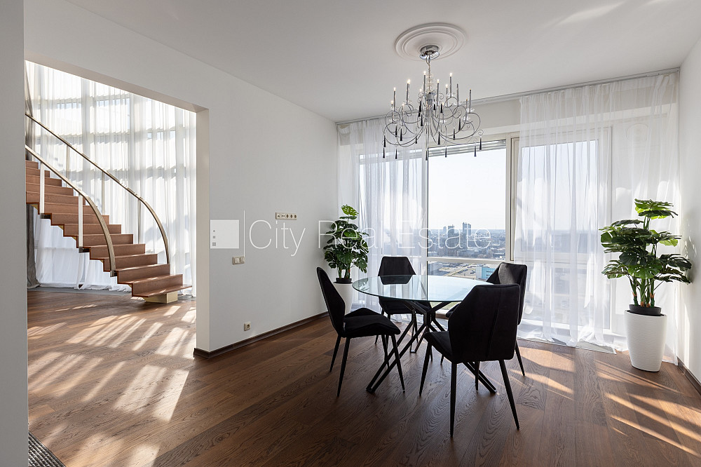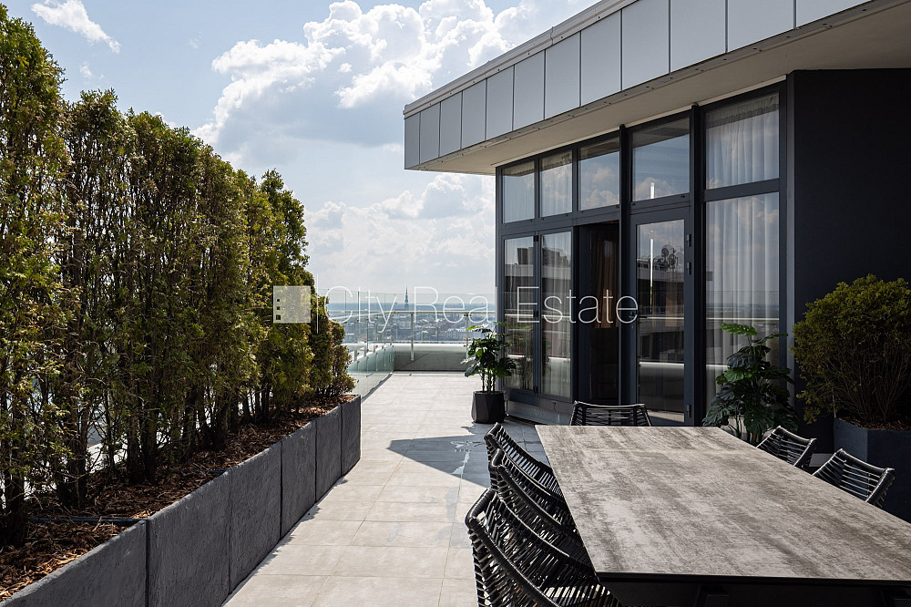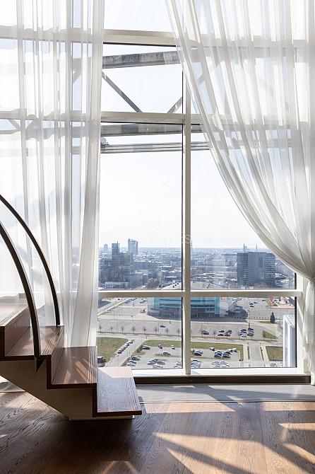 Проект - Skanstes Virsotnes (Сканстес Вирсотнес), новостройка, благоустроенный озеленённый двор, подземная стоянка, охраняемая территория, во дворе детская игровая площадка, апартаменты люкс, верхний этаж с терассой, терасса 13.24 м2, широкий вид из окна, система вентиляции воздуха, двухэтажный, студио, кухня объединена с гостинной, гардеробная, kабинет, центральное отопление, полная отделка , большие витрины, новая сантехника, три санузла, душевая кабина, ванна джакузи, биде, встроенная кухня, круглосуточная охрана, стратегически выгодное место, CITY REAL ESTATE ID - 516052