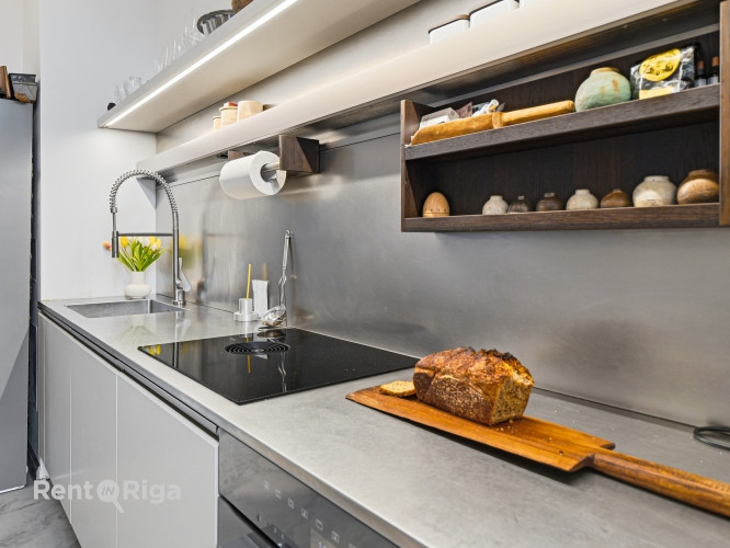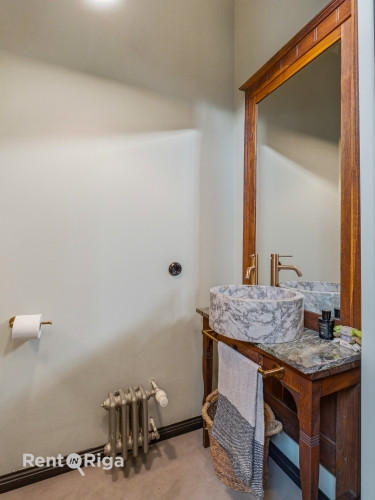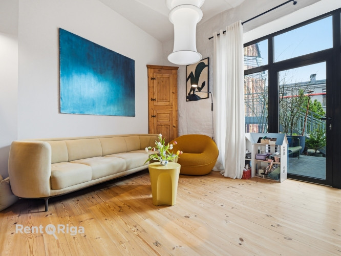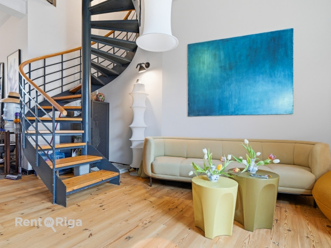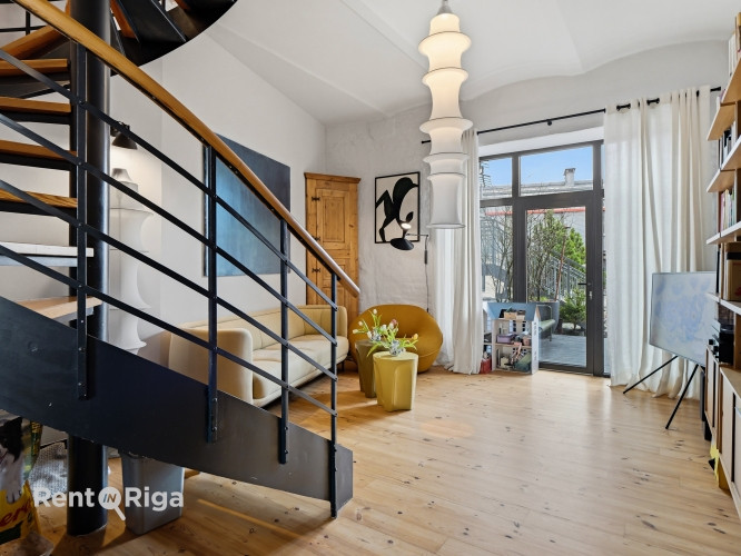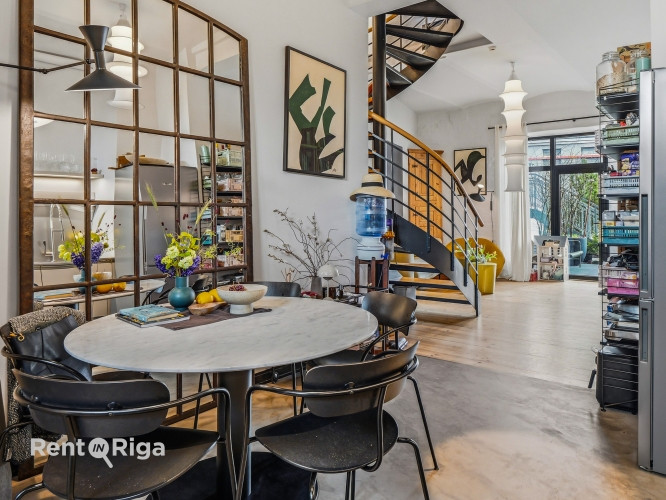 Трёхуровневая квартира в престижном проекте Gypsum Factory Кипсала, на берегу Даугавы Предлагается эксклюзивная трёхуровневая квартира в одном из самых уникальных и архитектурно выразительных проектов Риги Gypsum Factory. Объект расположен в зелёной и спокойной части Кипсалы, на самом берегу Даугавы, сочетая близость к центру города с уединением и природной атмосферой. Квартира отличается высокими потолками, большими панорамными окнами и выразительным дизайном, создающими ощущение простора и света. В интерьере гармонично сочетаются натуральные материалы деревянные полы, открытые потолочные балки и элементы индустриального стиля, придающие объекту характер и уникальность. Из квартиры открываются впечатляющие панорамные виды на Старый город, пассажирский порт и Президентский дворец. Просторная терраса и зона внутреннего двора позволяют наслаждаться тишиной и приватностью, находясь при этом в центре города. В нескольких минутах ходьбы расположена частная пристань для яхт и моторных лодок. Планировка: 1 уровень: светлая и просторная гостиная с кухонной зоной, высокими потолками и выходом во внутренний двор; гостевой туалет 2 уровень: две спальни и ванная комната 3 уровень: комната с выходом на террасу, откуда открывается захватывающий вид на Старый город и Даугаву Квартира оснащена современной кухней с качественной техникой, продуманным освещением и дизайнерской мебелью. Винтовая лестница придаёт интерьеру динамику и элегантно соединяет уровни. The apartment is sold with a fully equipped kitchen, built-in furniture, and lighting fixtures. Это отличный выбор для тех, кто ценит архитектуру, дизайн и уникальную жилую среду в одном из самых престижных районов Риги.