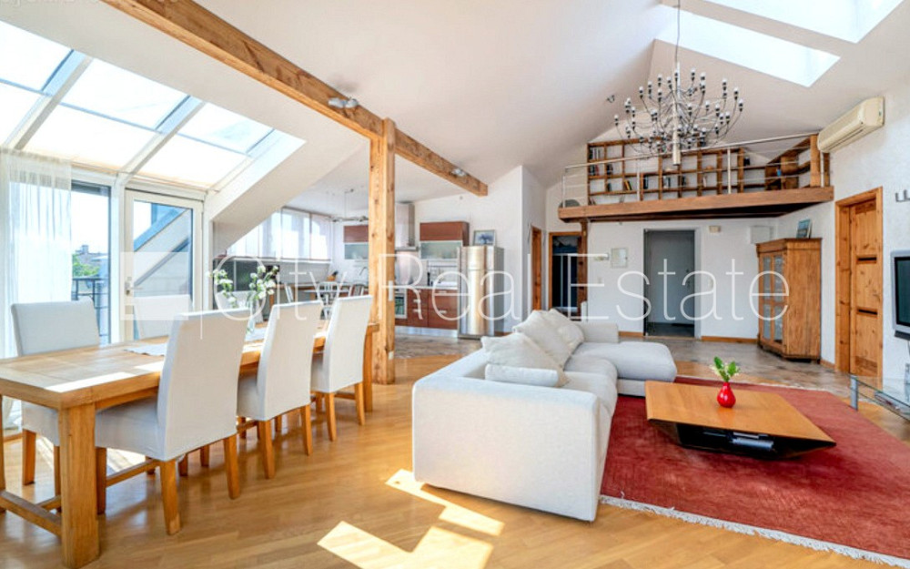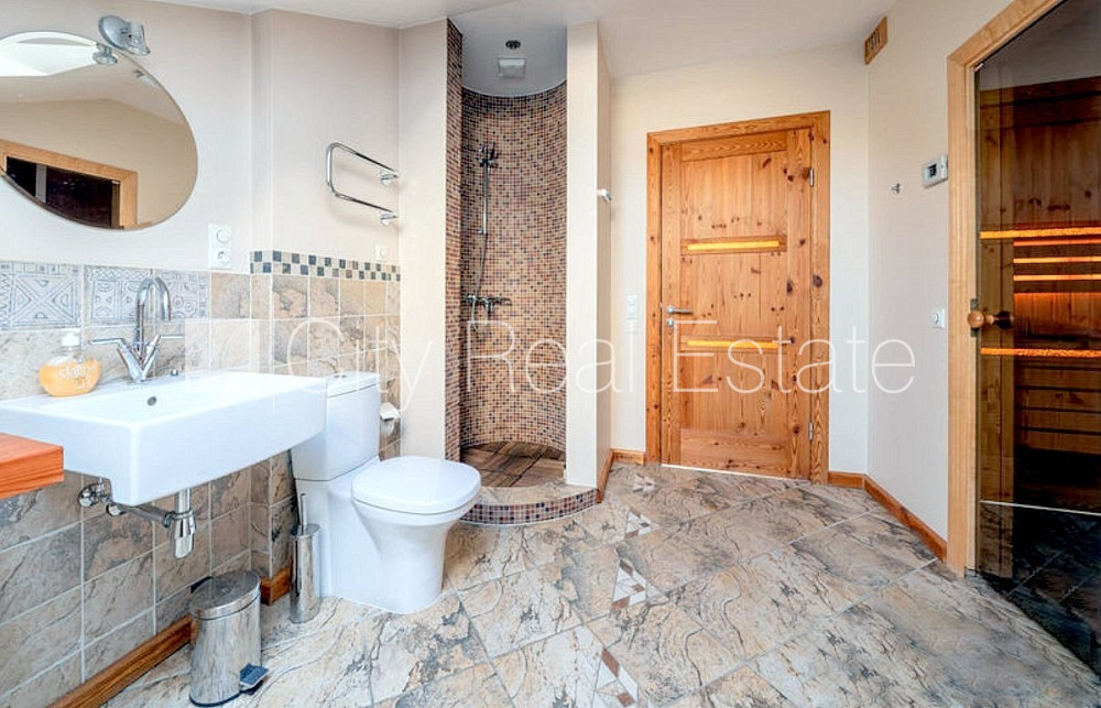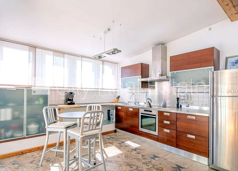 Земля в собственности, фасадный дом, реновированный дом, благоустроенная озеленённая территория, подъездная дорога покрыта брущаткoй, закрытый двор, возможность аренды подземной парковки, мансарда, лифт, лестничная клетка после капитального ремонта, две терассы, финская баня, окна выходят на улицу, широкий вид из окна, количество спален 3 шт., студио, кухня объединена с гостинной, гардеробная, прачечная, высота потолков 4,3 м, высокие потолки, камин, газовое отопление, автоматическая система отопления, полная отделка , полы с подогревом в ванной, пластиковые стекло-пакетные окна, мансардные окна, металлическая дверь, покрытие пола из дуба, паркетный пол, кафельный пол, два санузла, ванна, душевая кабина, встроенная кухня, встроенные стенные шкафы, кондиционер, посудомоечная машина, электрическая плита, духовка, стиральная машина, oптический интернет, сигнализация, лестничная клетка на кодовом замке, стратегически выгодное место, CITY REAL ESTATE ID - 431810