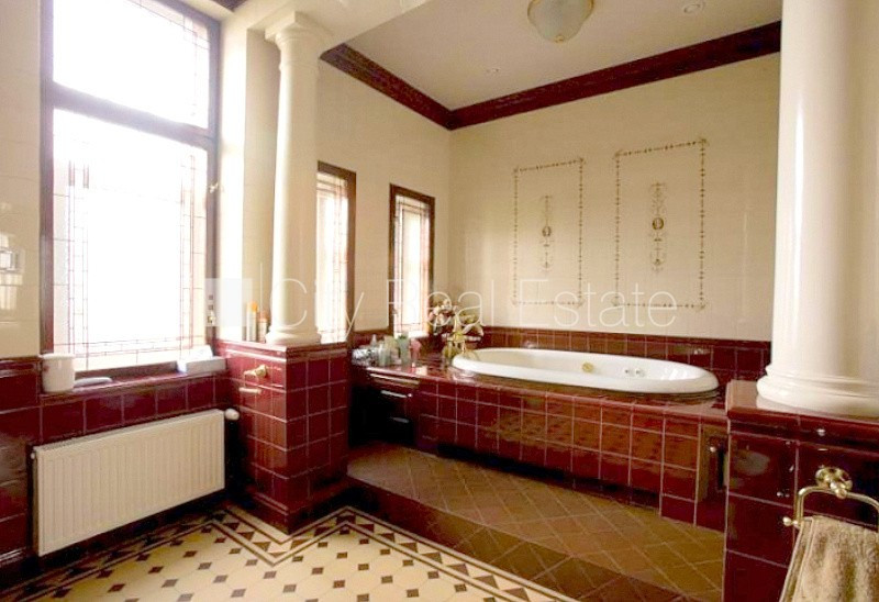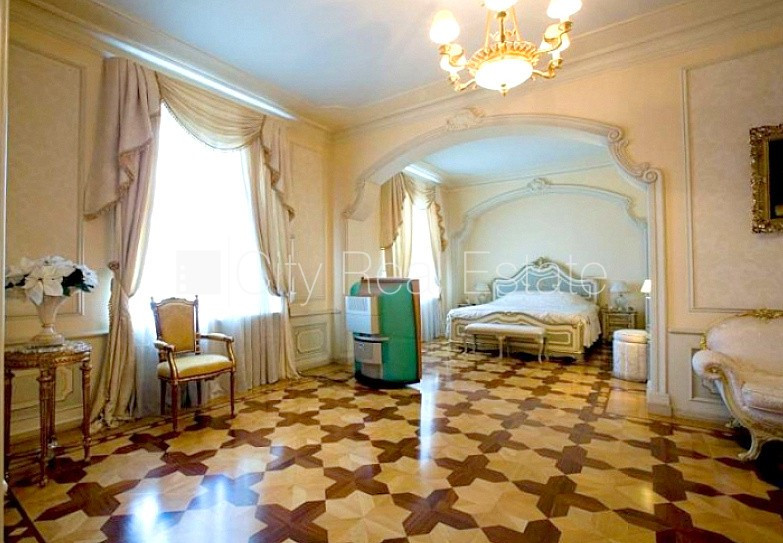 Земля в собственности, фасадный дом, реновированный дом, поменянное покрытие крыши, благоустроенная озеленённая территория, подъездная дорога покрыта брущаткoй, закрытый двор, въездные ворота оснащены автоматической подъёмной системой, бесплатная стоянка во дворе, охраняемая территория, объект охраняет физическая охрана, апартаменты люкс 598 м2, лифт, лестничная клетка после капитального ремонта, балкон, лоджия, финская баня, окна выходят в обе стороны дома, широкий вид из окна, количество спален 5 шт., трёхэтажный, гостиная, кухня, помещение для отдыха, гардеробная, холл, kабинет, высота потолков 3-6 м, высокие потолки, два входа, газовое отопление, автоматическая система отопления, полная отделка , три уровня, деревянные стекло-пакетные окна, наклеенные обои, паркетный пол, кафельный пол, новая электроинсталяция, kоличество ванных комнат 4 шт., душевая кабина, ванна джакузи, биде, антикварная мебель, встроенная кухня, встроенные стенные шкафы, угловой диван, гостинный стол, стулья, кресла для отдыха, трёхместное кресло для отдыха, кондиционер, телевизор, холодильник, посудомоечная машина, электрическая плита, стиральная машина, сушилка белья, oптический интернет, сигнализация, дымовой детектор , видео домофон, круглосуточная охрана, система входных пропусков, до парка 70 м, стратегически выгодное место, до Старой Риги 330 м, комиссия за посреднические услуги не взымается, поможем оформить Вид на жительство в Латвии, CITY REAL ESTATE ID - 424320