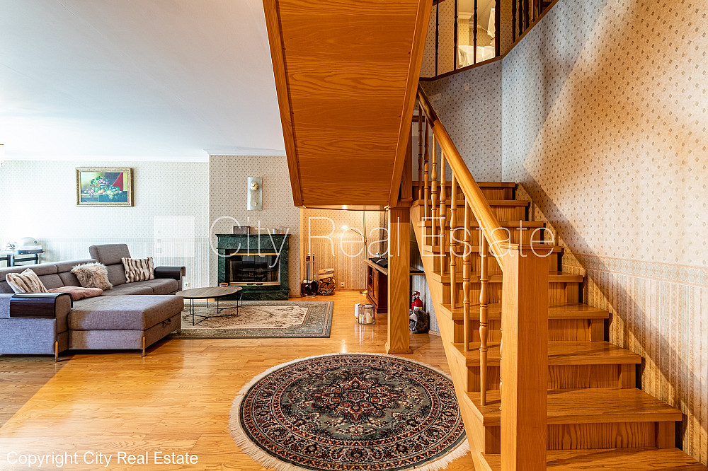 Земля в собственности, поменянное покрытие крыши, благоустроенный озеленённый двор, территория обнесена забором, места для нескольких машин, подземная стоянка, вход с улицы, во дворе детская игровая площадка, лестничная клетка после капитального ремонта, окна выходят в обе стороны дома, система вентиляции воздуха, изолированные комнаты 5 шт., студио, кухня объединена с гостинной, гардеробная, подсобка, высота потолков 2,67 м, камин, газовое отопление, два уровня, полы с подогревом, металлическая дверь, встроенная светотехника, паркетный пол, кафельный пол, три санузла, душевая кабина, ванна джакузи, встроенная кухня, встроенные стенные шкафы, видео домофон, лестничная клетка на кодовом замке, освободится по необходимости, сдана в эксплуатацию 1996 г., CITY REAL ESTATE ID - 517237