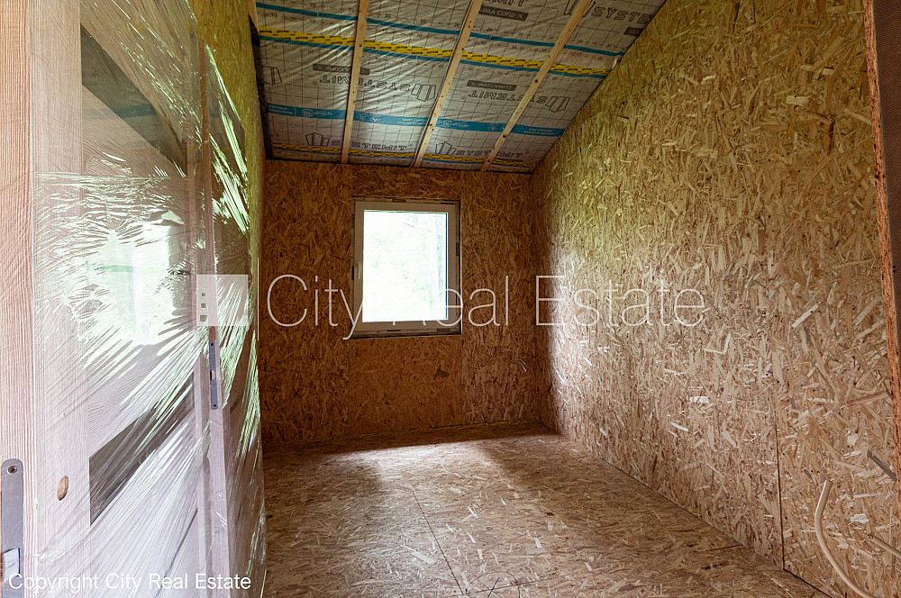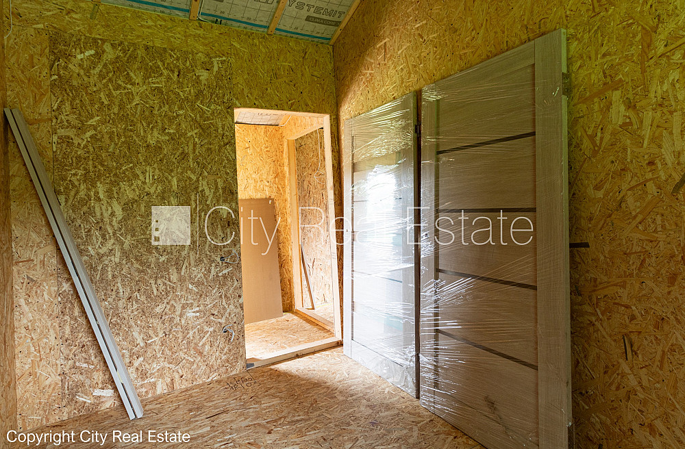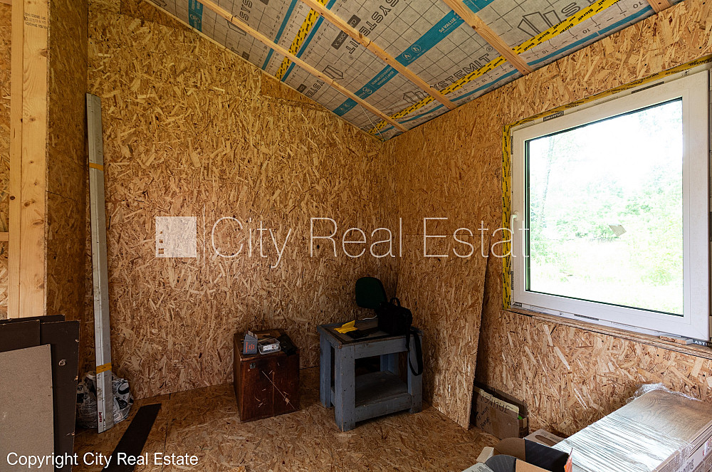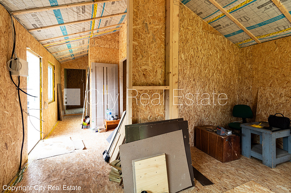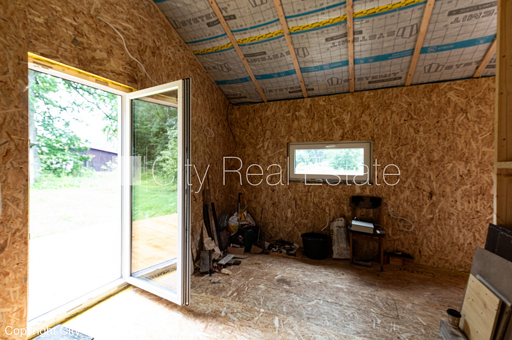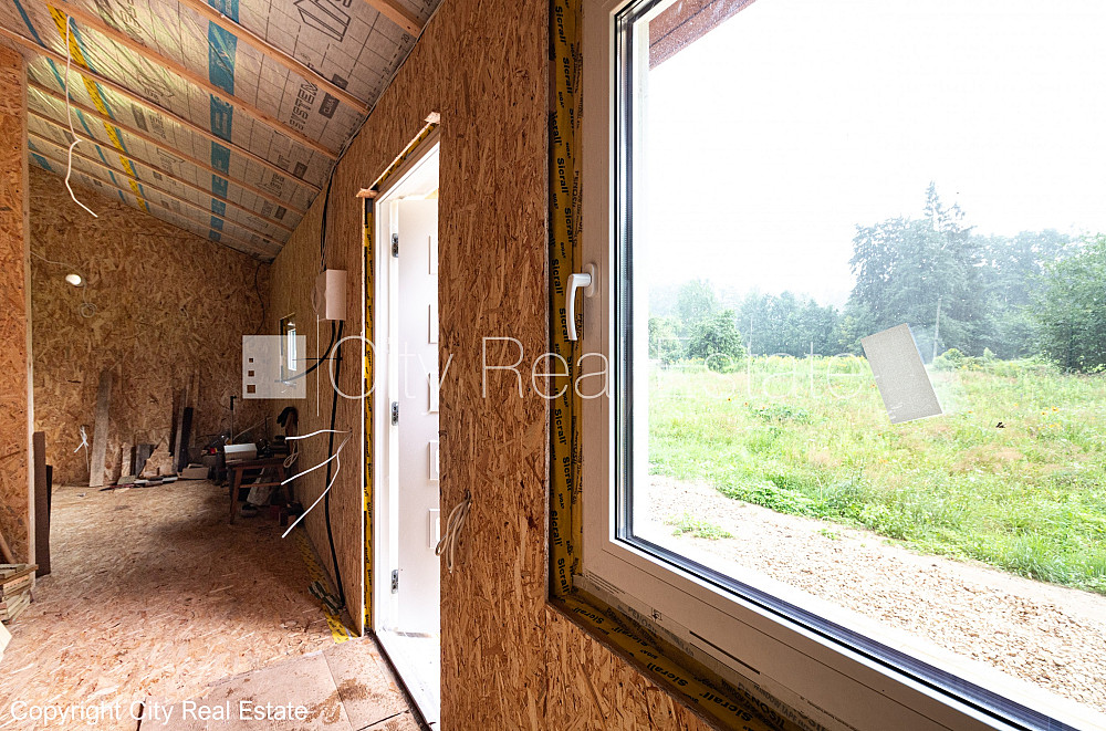 Частный дом, деревянный дом, энергоэффективный дом, места для нескольких машин, терасса 40 м2, количество спален 2 шт., изолированные комнаты 2 шт., студио, кухня объединена с гостинной, два входа, пластиковые стекло-пакетные окна, ламинатный пол, совмещённый санузел, фото сделано во время ремонта, до железной дороги 100 м, находится рядом с лесом, проведено электричество, городская канализация, городская вода, на территории земли несколько строек, хозяйственная постройка, луга, недалеко от главного шоссе, подъездная дорога, возможно приобрести дополнительную землю , зарегестрирована в земельной книге, стратегически выгодное место, до магазина 1 км, до остановки поезда 1 км, о цене возможно договоритсья, CITY REAL ESTATE ID - 517655